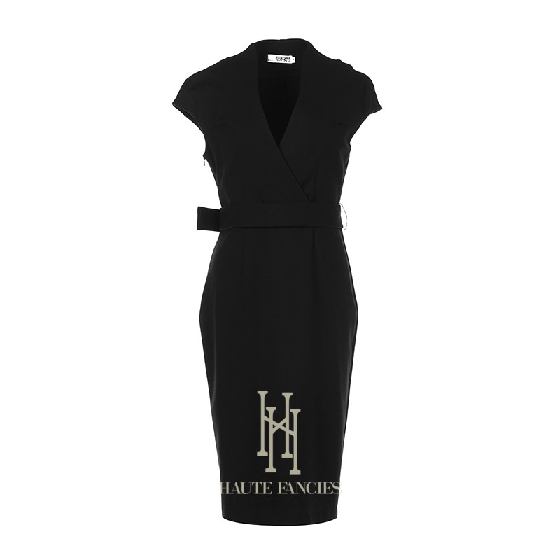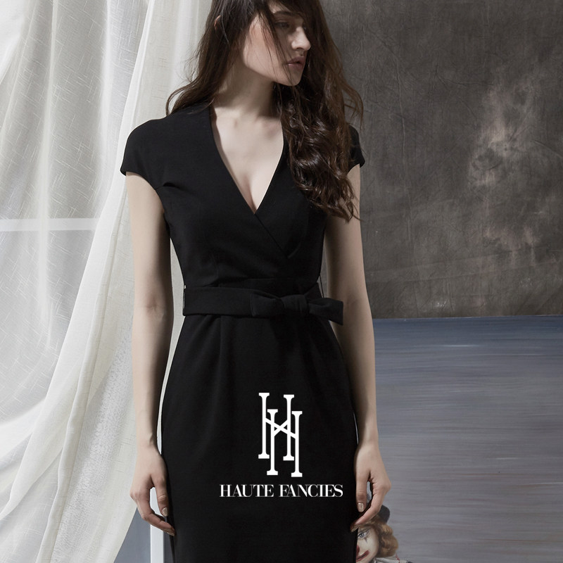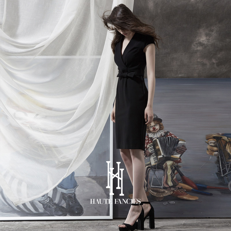外交官 HAUTE FANCIES后构想|黑色弹力针织法式小高领包臀连衣裙