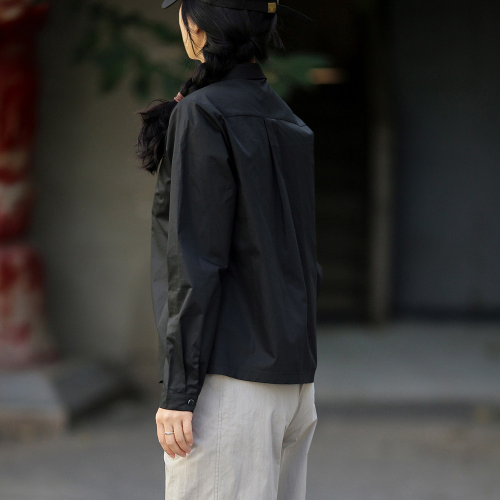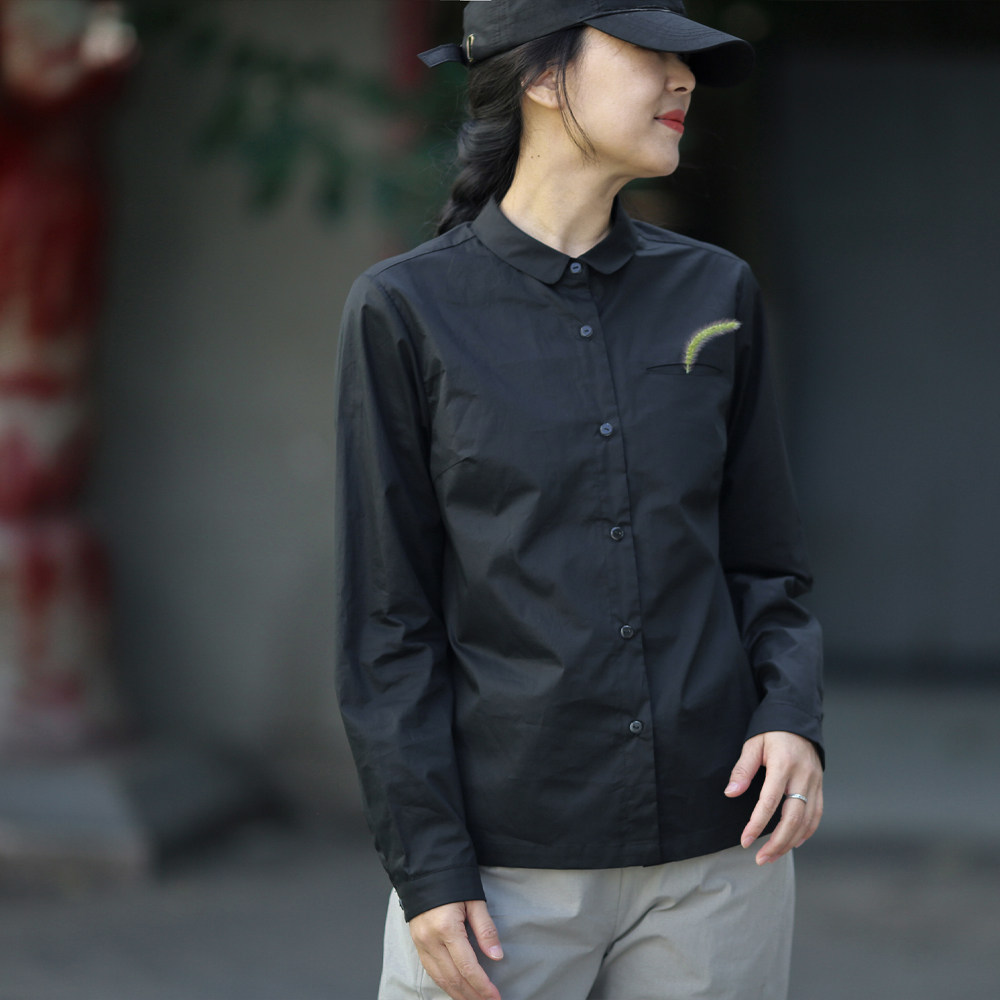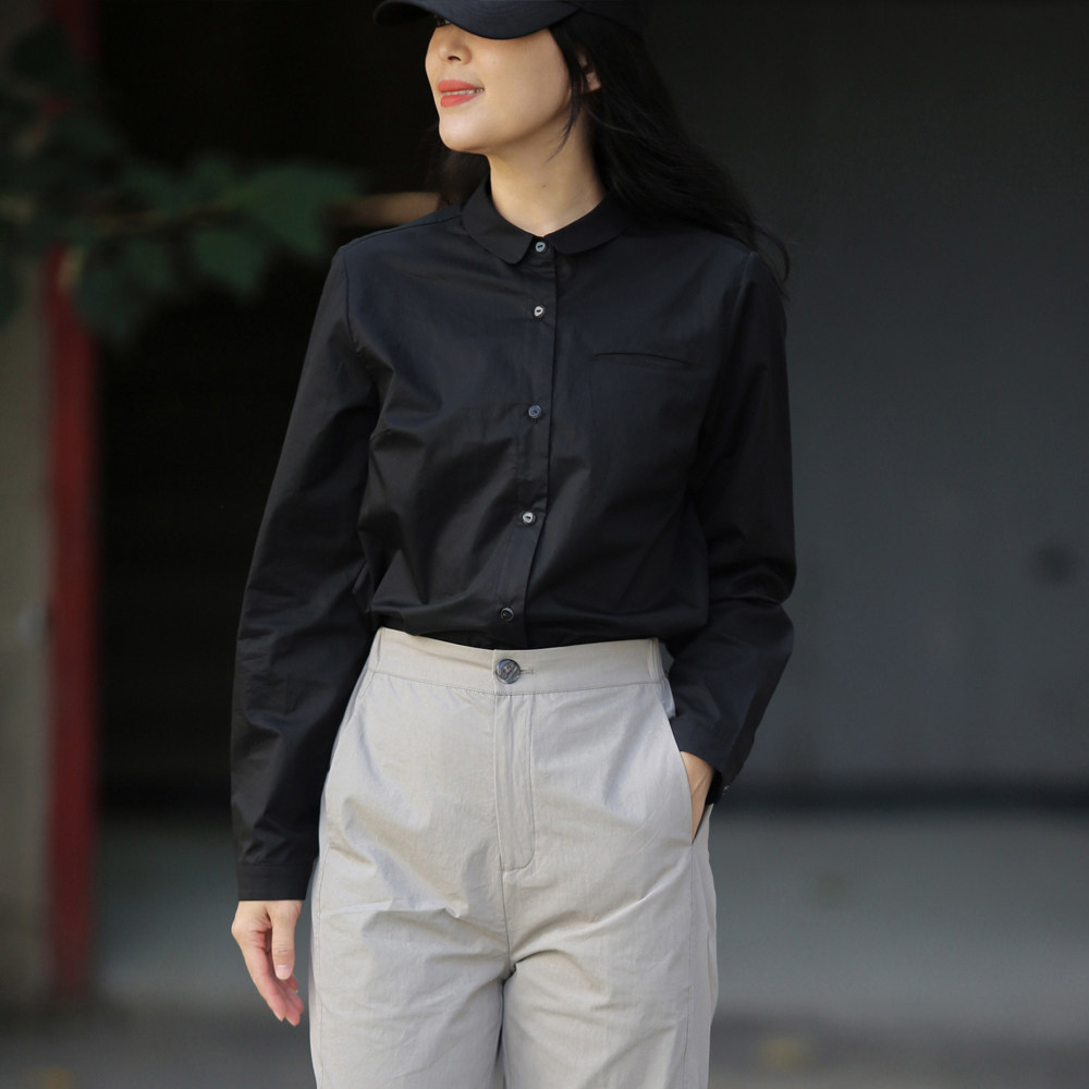 游设计原创小圆翻领百搭基础款长绒棉 衬衫 黛墨