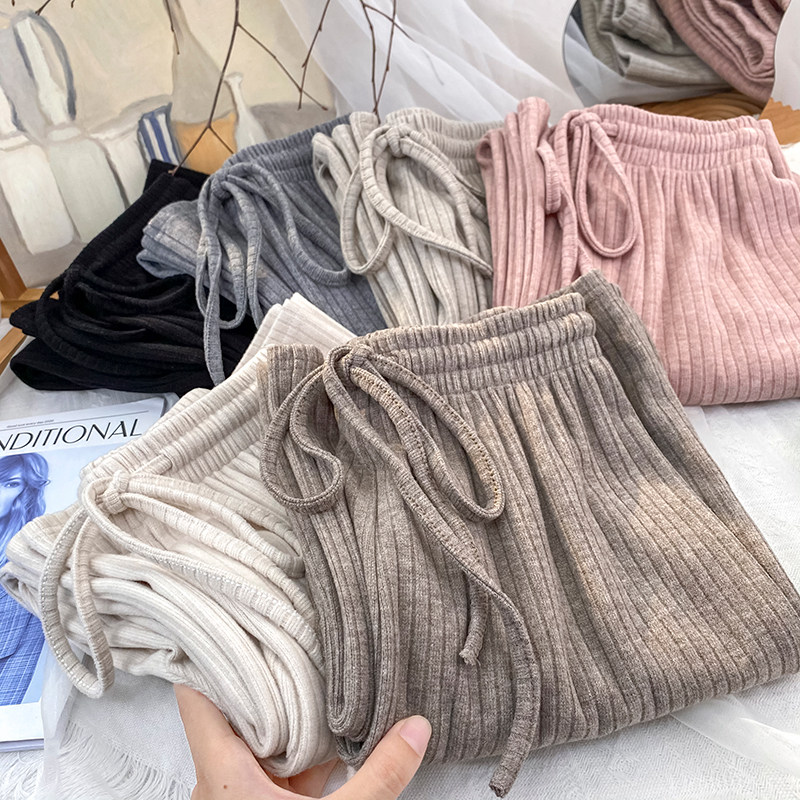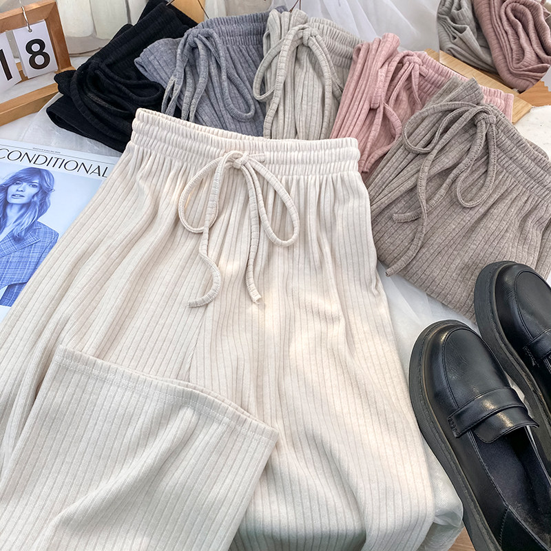 首页> 女装> 窄版兔绒坑条纹针织阔腿裤女春秋150小矮个子宽松垂感直筒休闲裤