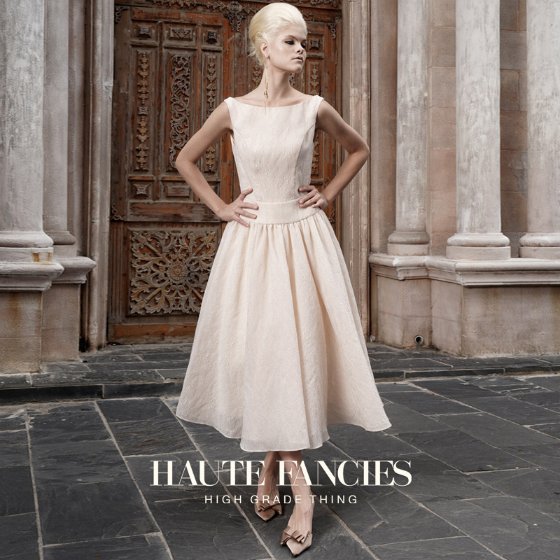华尔兹HAUTE FANCIES后构想 | 裸色提花法式低腰一字领连衣裙25秋