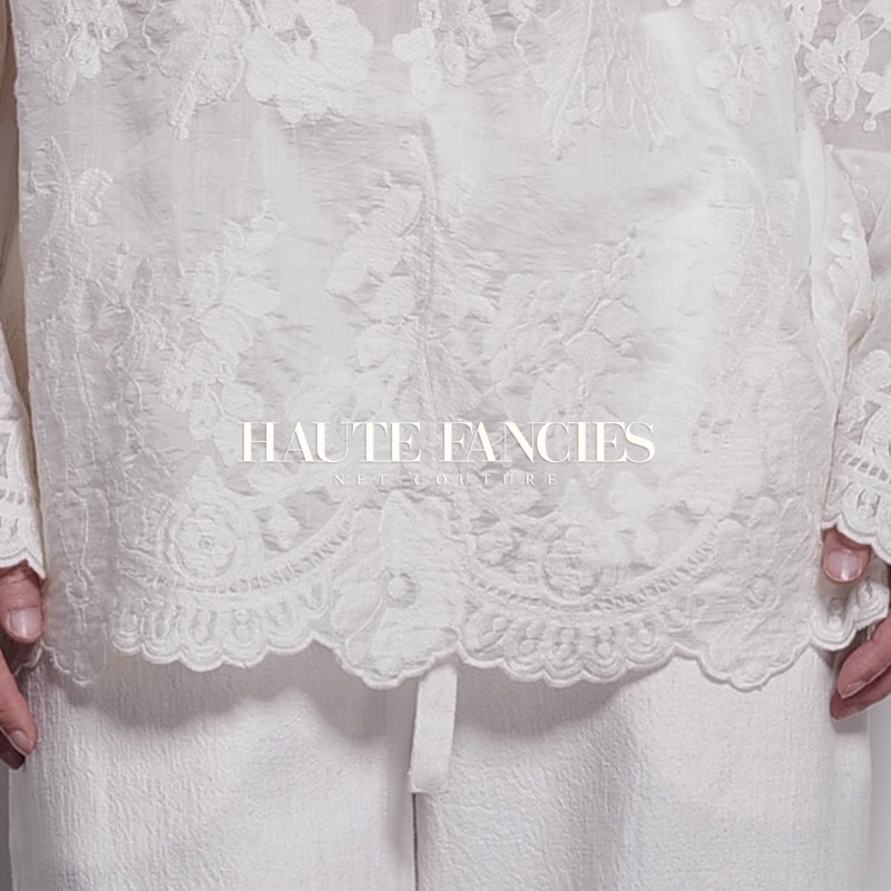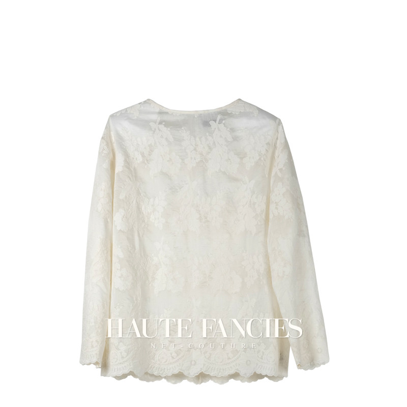 书香 HAUTE FANCIES后构想|圆领松身杏色蕾丝上衣优雅柔美上衣秋