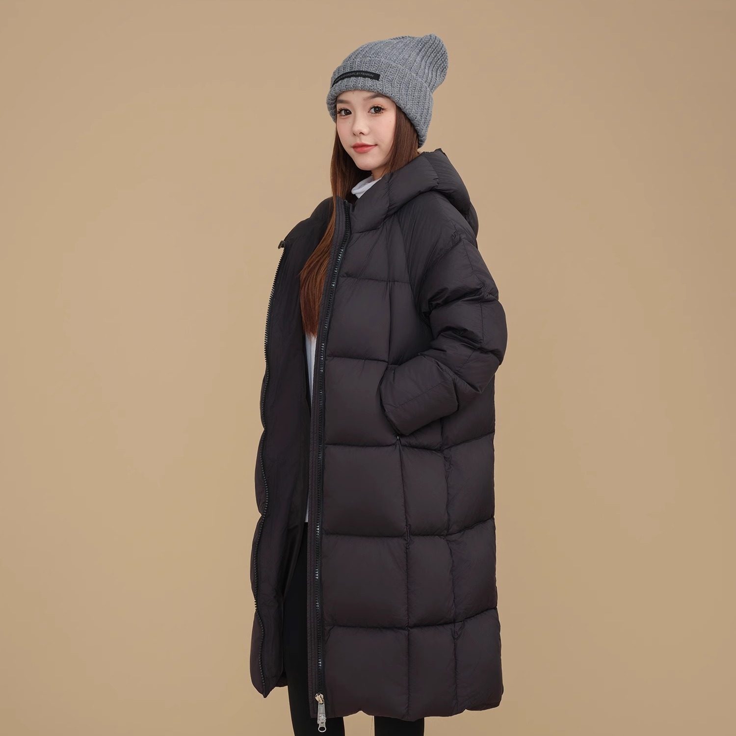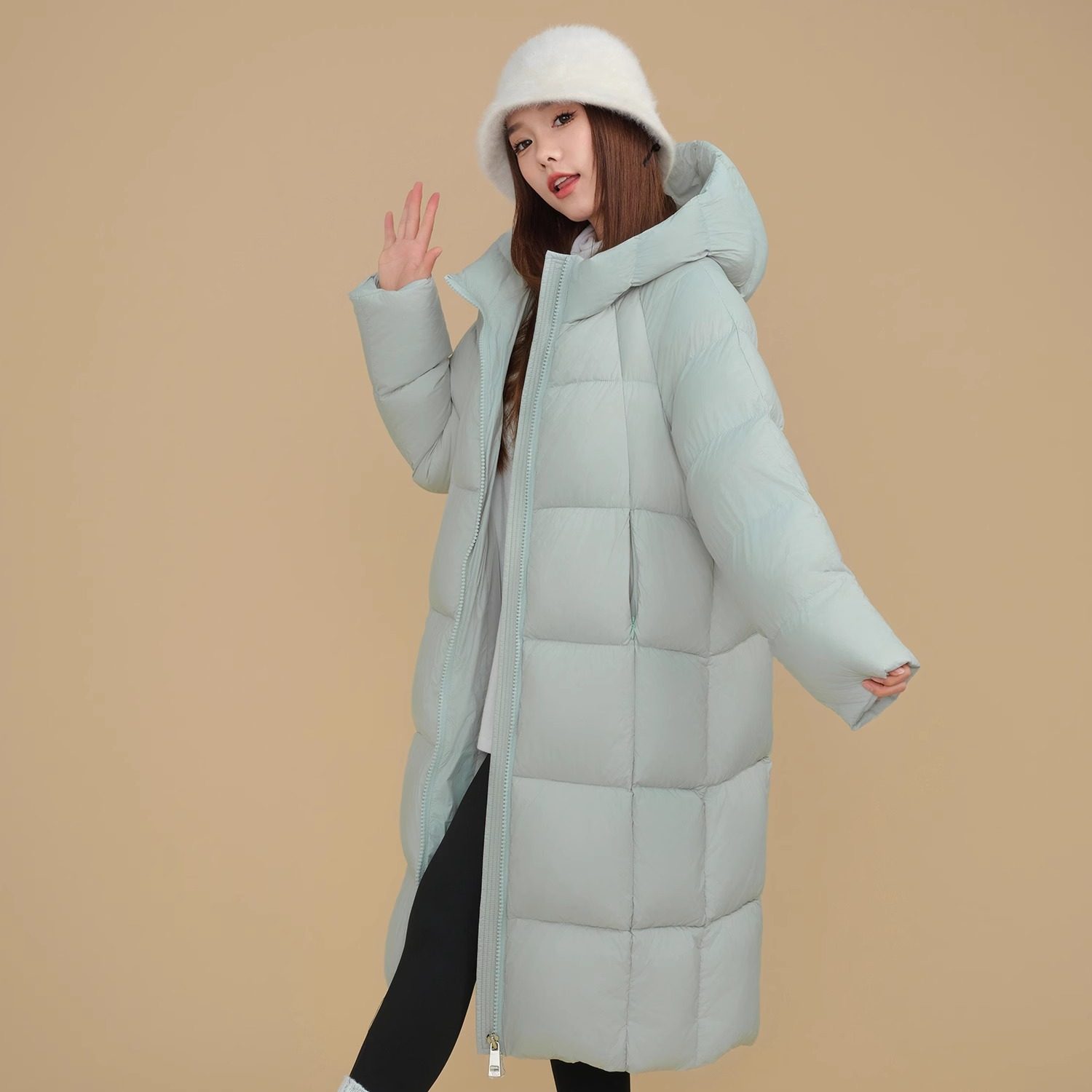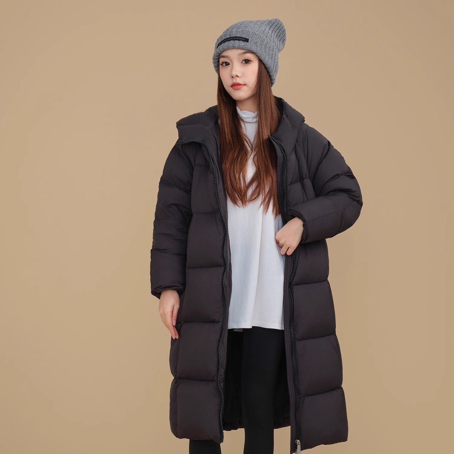 伴夏小个子自制90白鸭绒超轻无胆零压宽松长款连帽大被子羽绒服