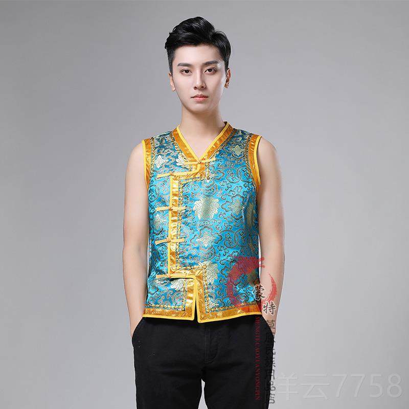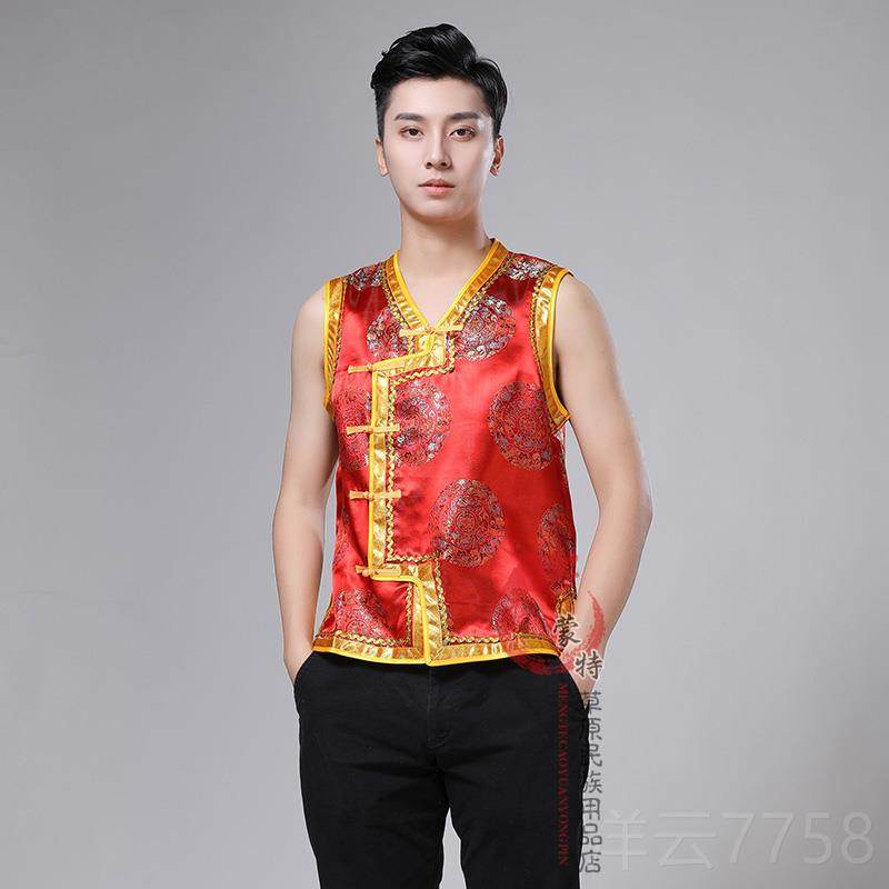 高档蒙古男装马甲坎肩蒙古族特色演男出表演男服装马生活款装甲工