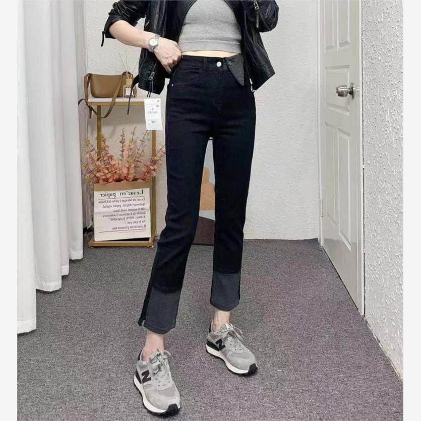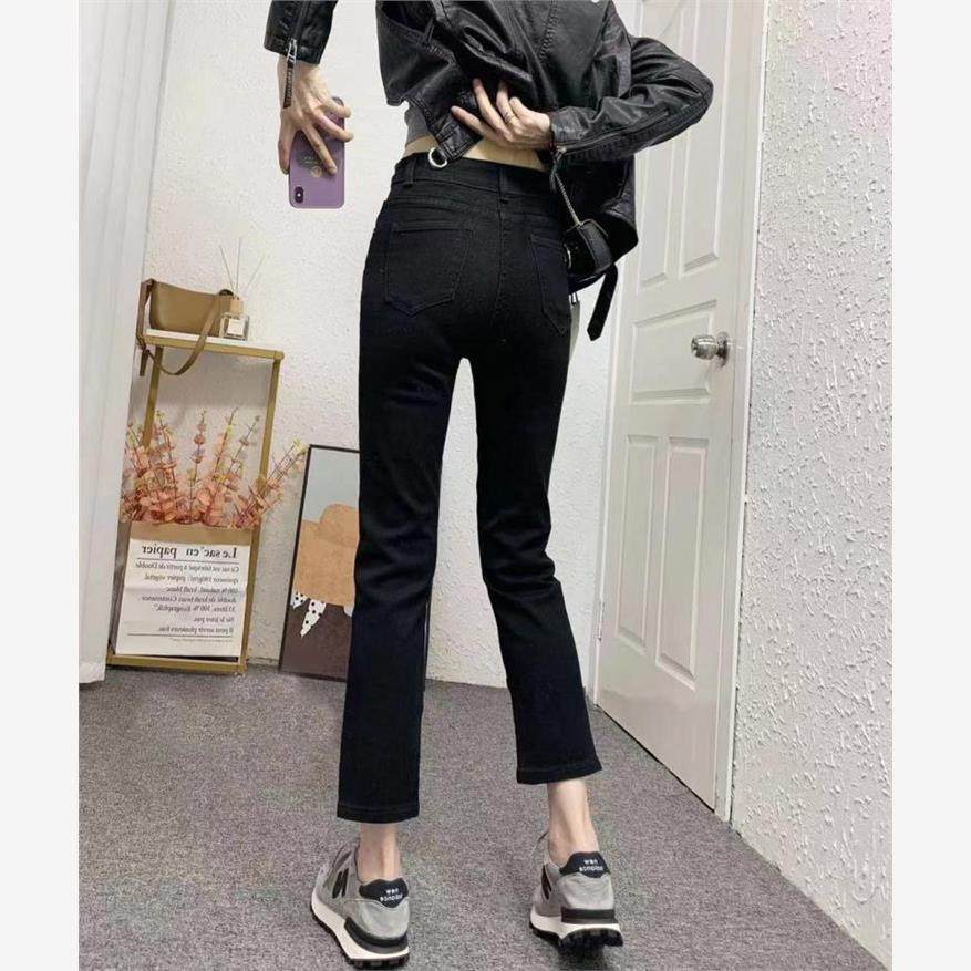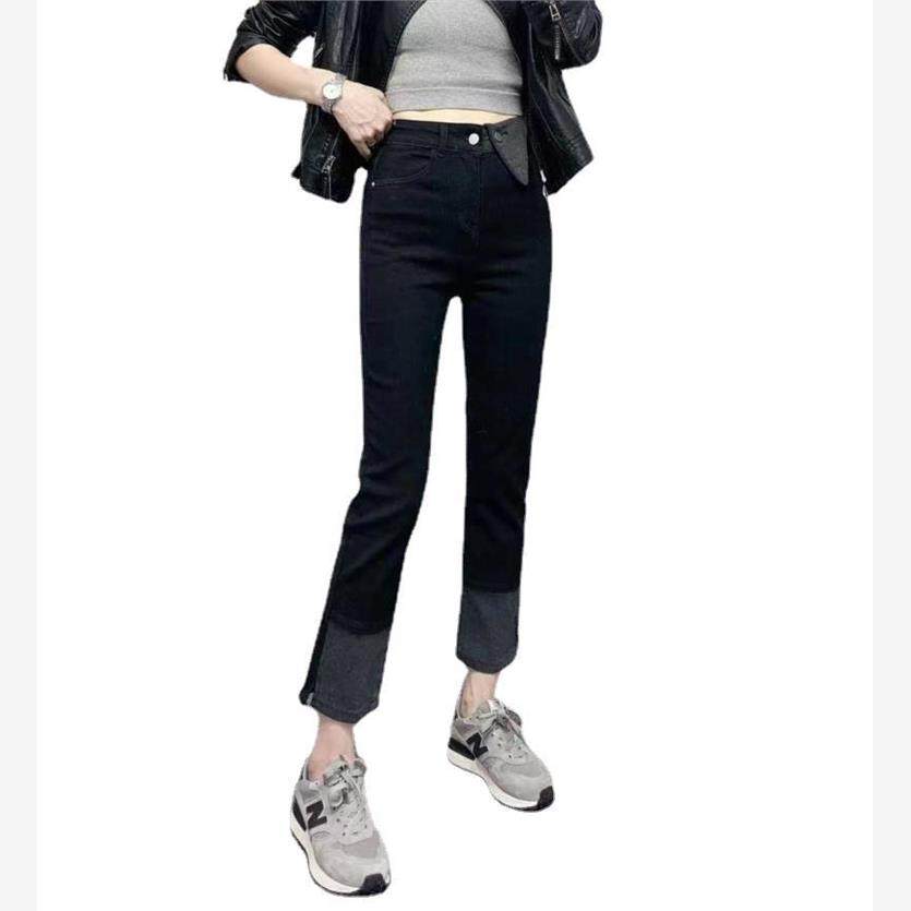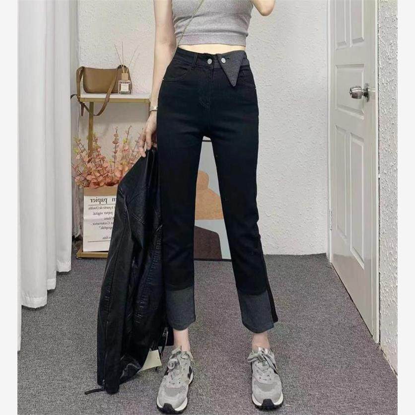 大码女装秋装高腰弹力直筒牛仔裤胖妹妹mm梨型身材显瘦九分烟管裤