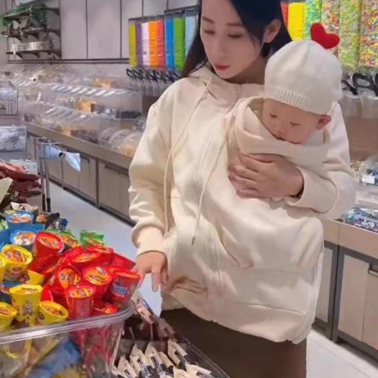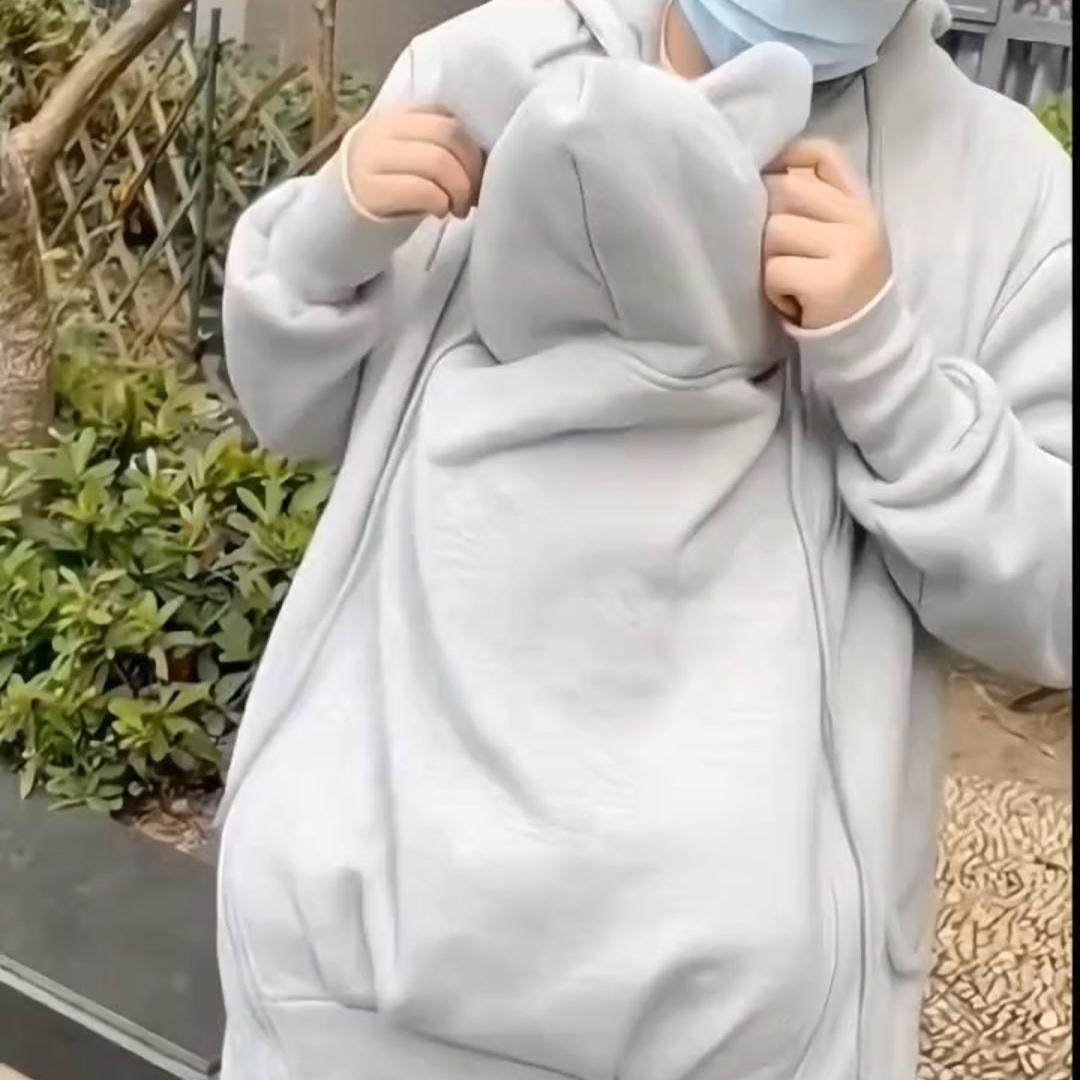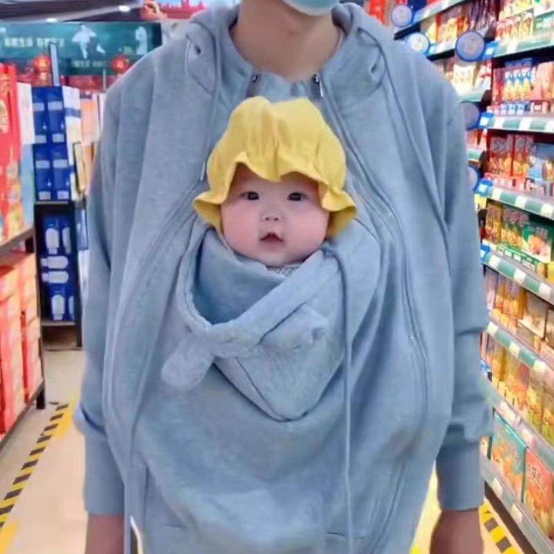 袋鼠妈妈特大码2-300斤母子连体衣秋冬新款宝宝哺乳卫衣加绒外套
