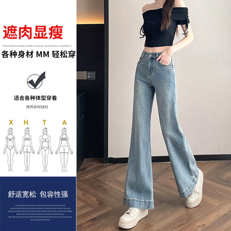 首页> 女装> 150小个子九分喇叭牛仔阔腿裤女2025春秋新款高腰垂感直筒微喇裤