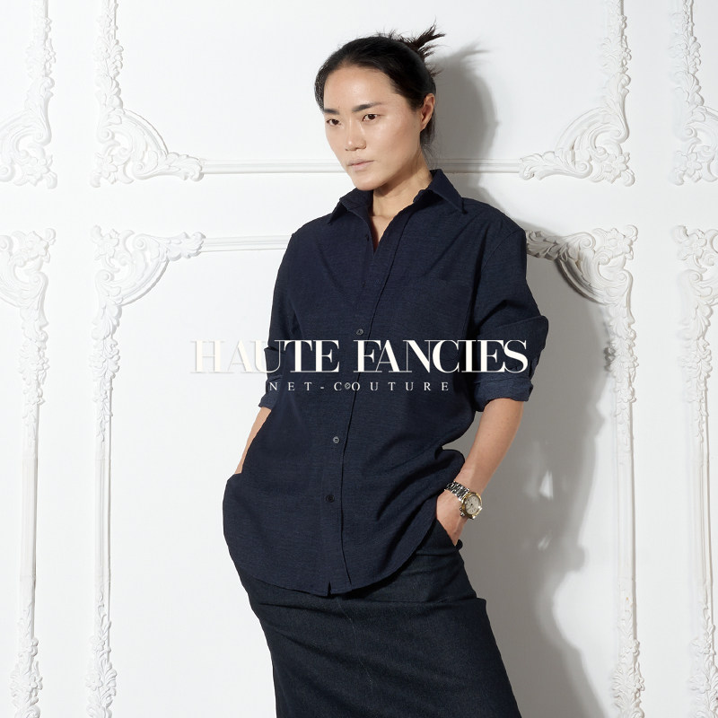 男友风 HAUTE FANCIES后构想|25秋冬新品宝蓝色软牛仔宽松衬衫