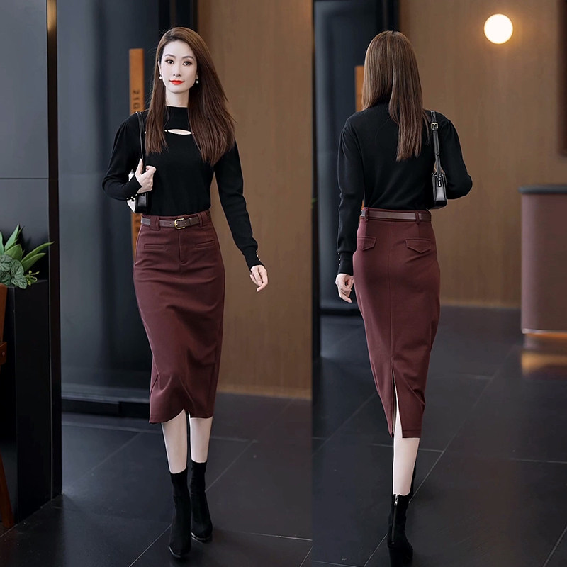 首页> 女装> 毛呢裙女中长款包臀裙子2025秋冬新款高腰显瘦一步直筒a字半身裙