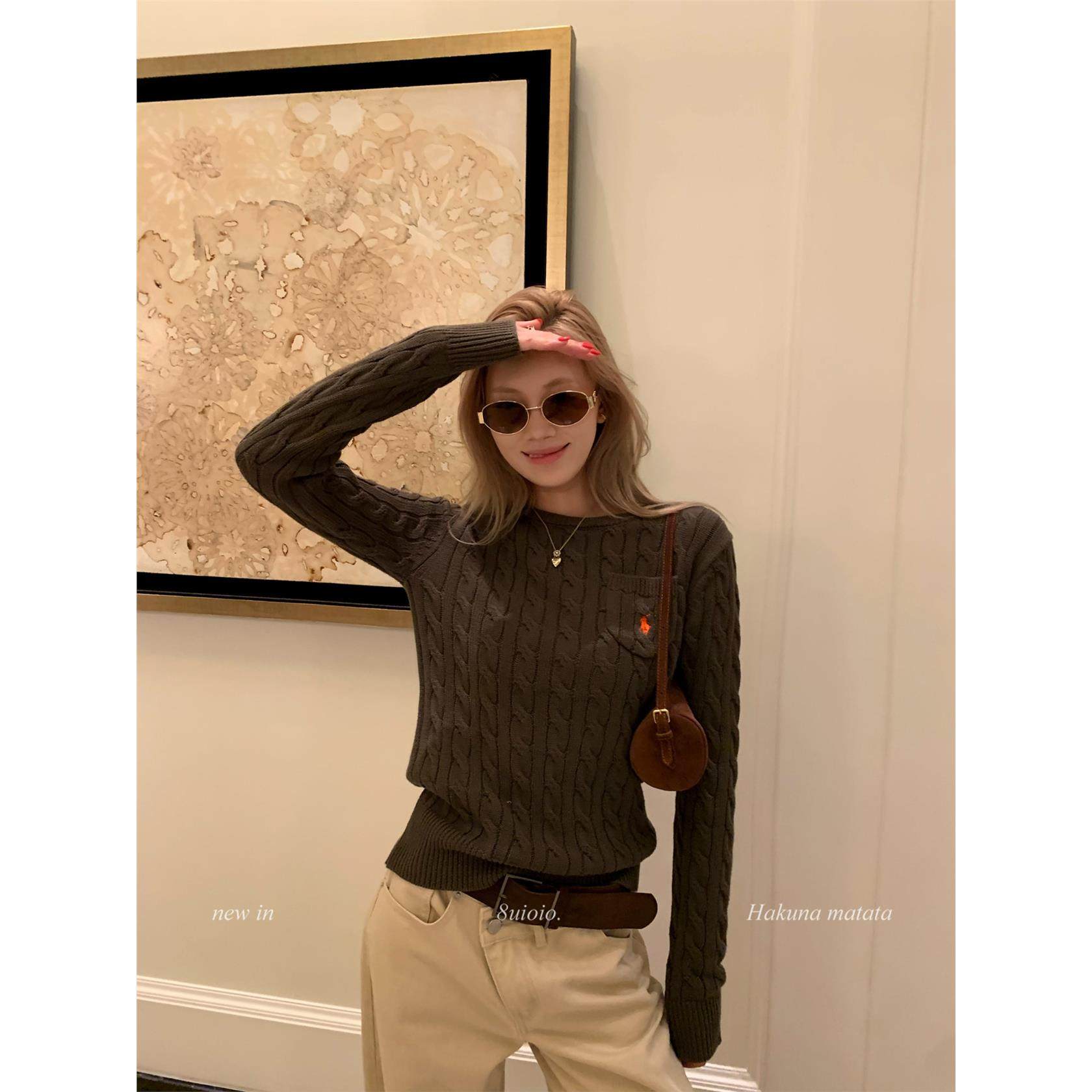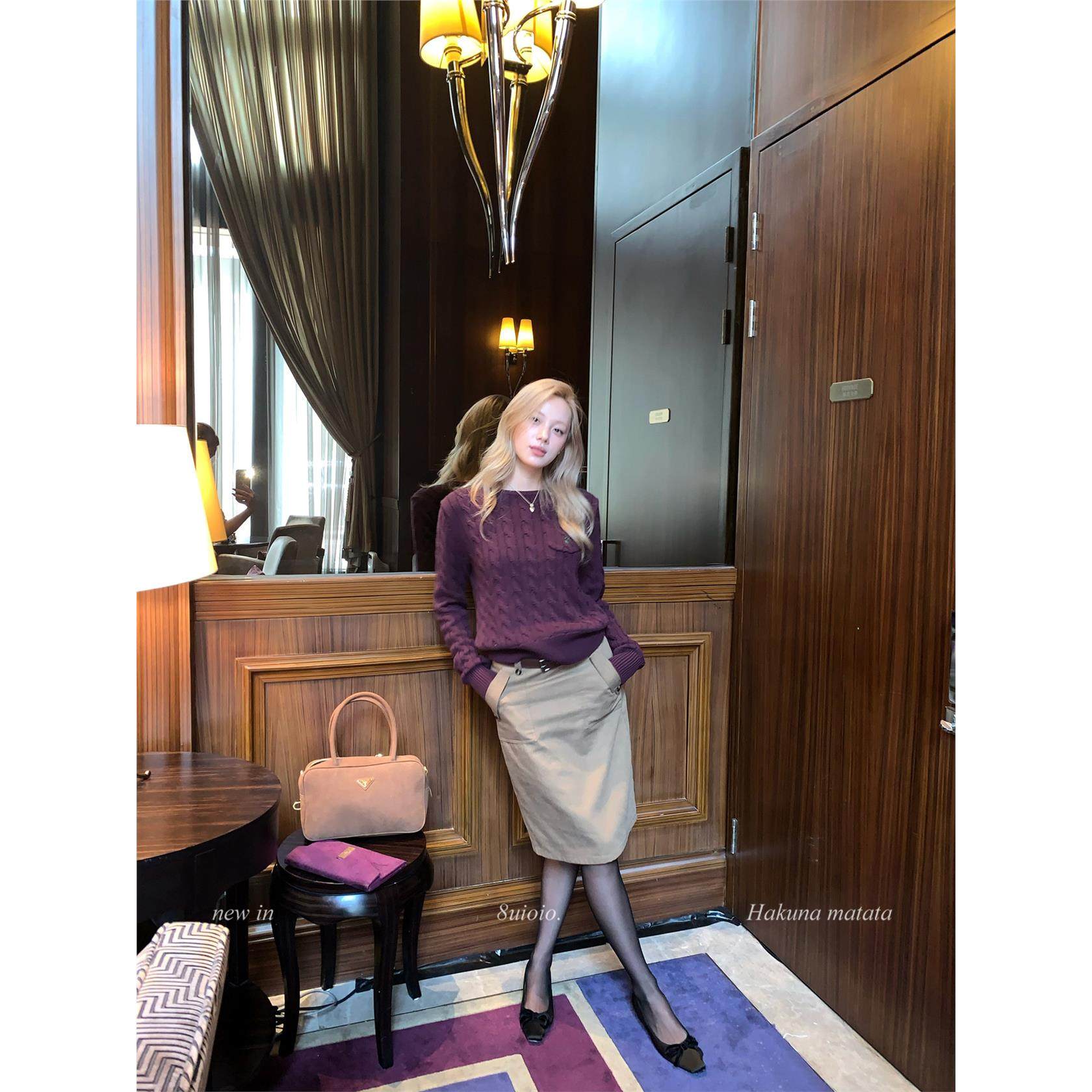 8uioio 黛丽恋曲 紫色圆领修身针织衫女2025初秋新款显瘦长袖上衣