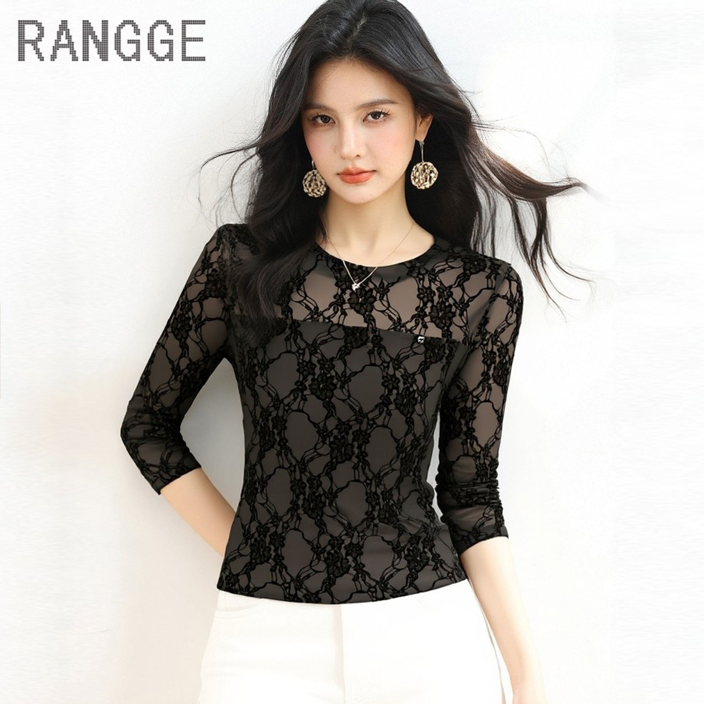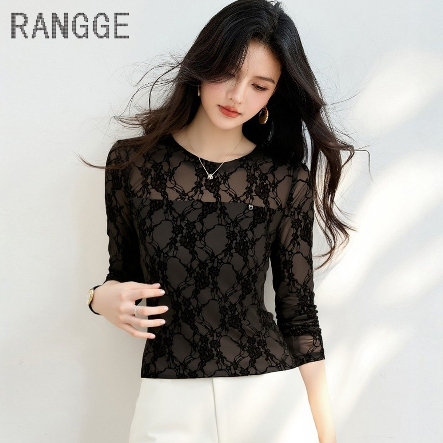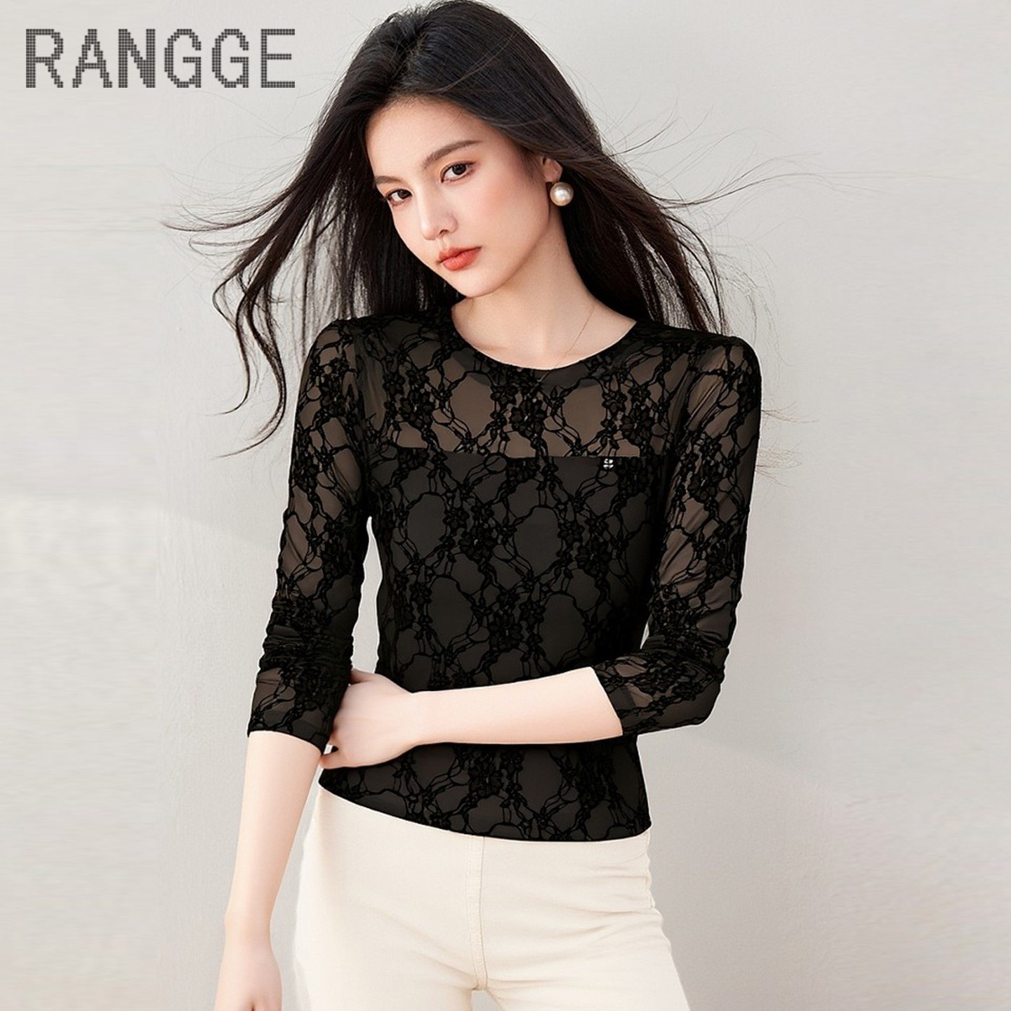首页> 女装> 黑色蕾丝长袖T恤女修身显瘦薄款透视打底衫气质高弹力网纱上衣