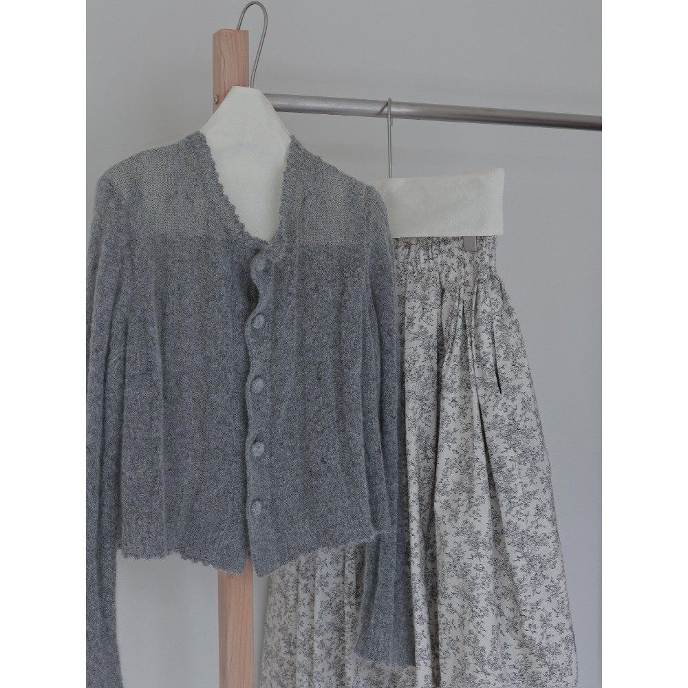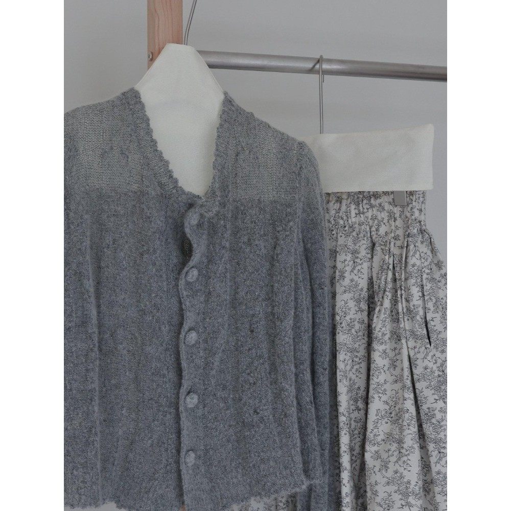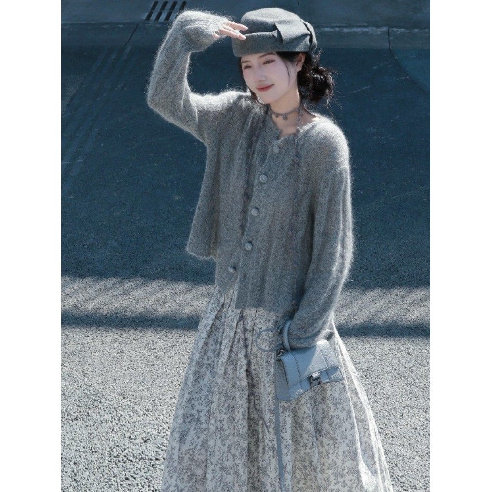 温柔风灰色马海毛针织衫碎花半裙套装高级感韩风chic一整套2025秋