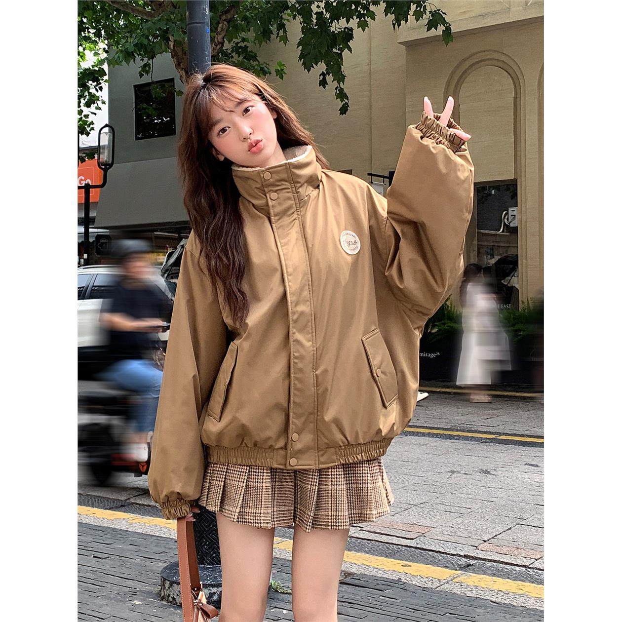 美式加厚羊羔毛绒冲锋衣外套女2025冬季新款休闲百搭棒球棉服夹克