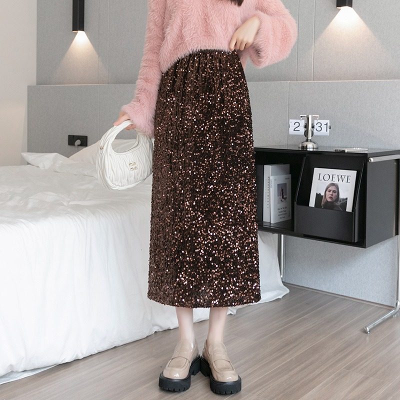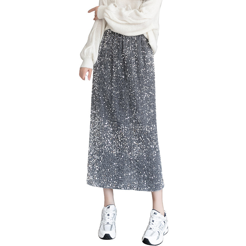 复古重工亮片半身裙女大码胖MM秋季新款高级感气质小众松紧腰长裙