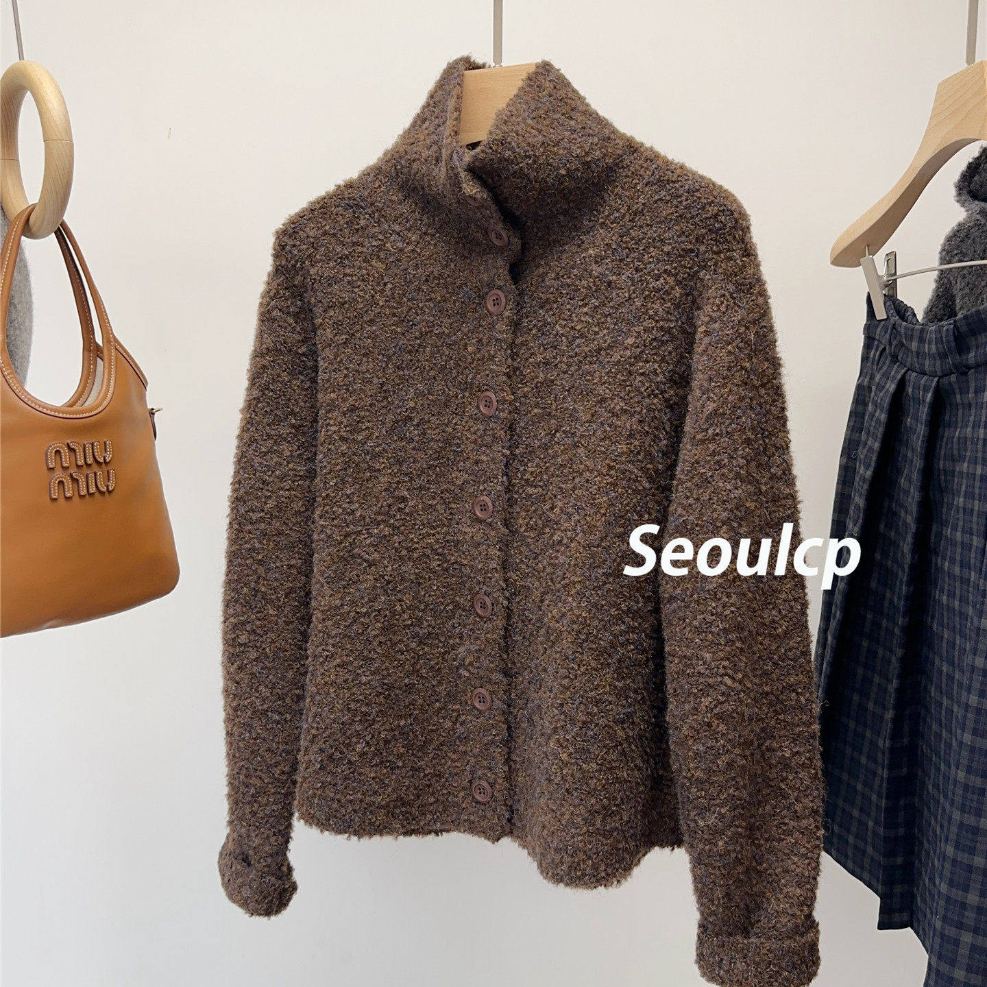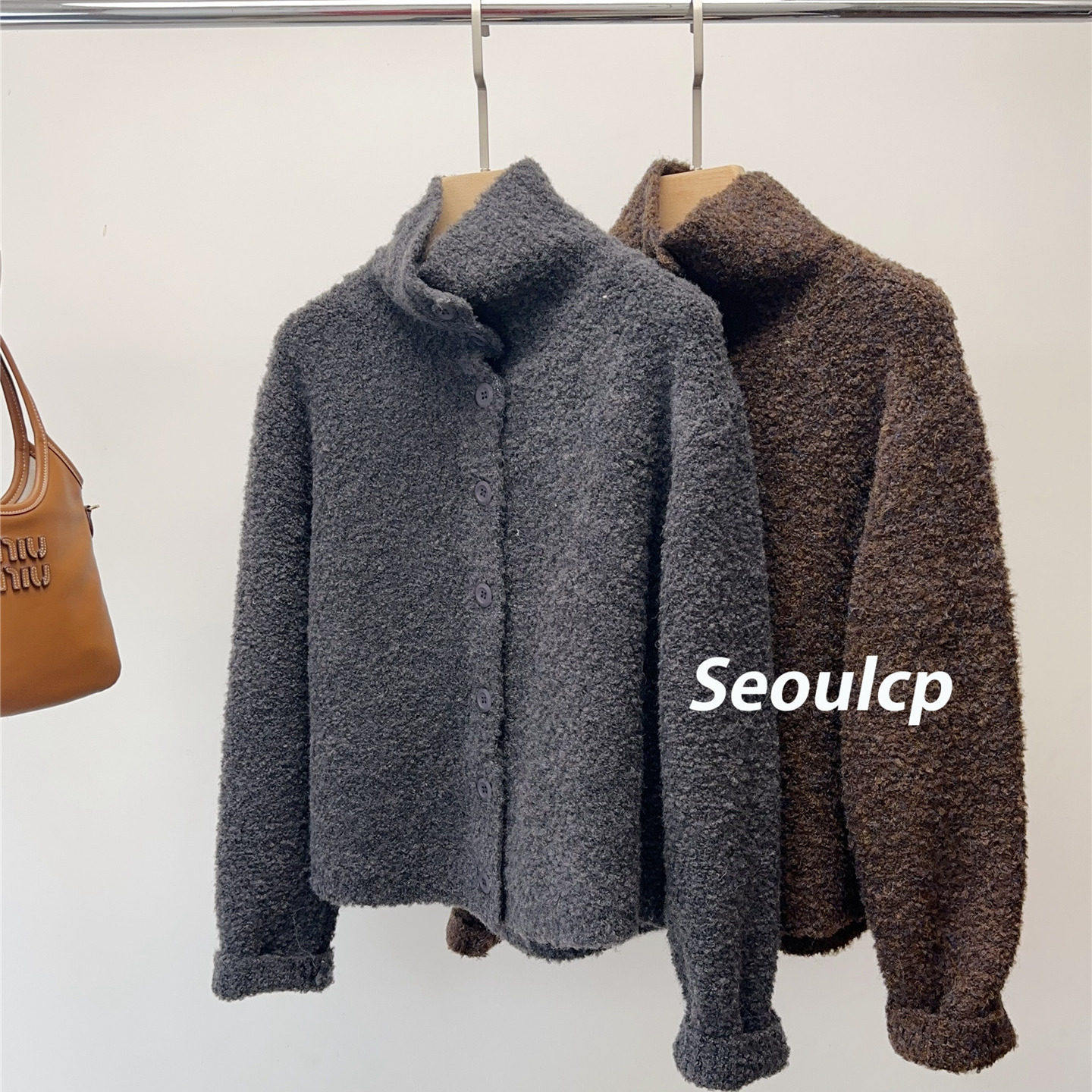 Seoulcp 韩系高领加厚毛衣女开衫外套秋冬慵懒软糯保暖针织衫上衣