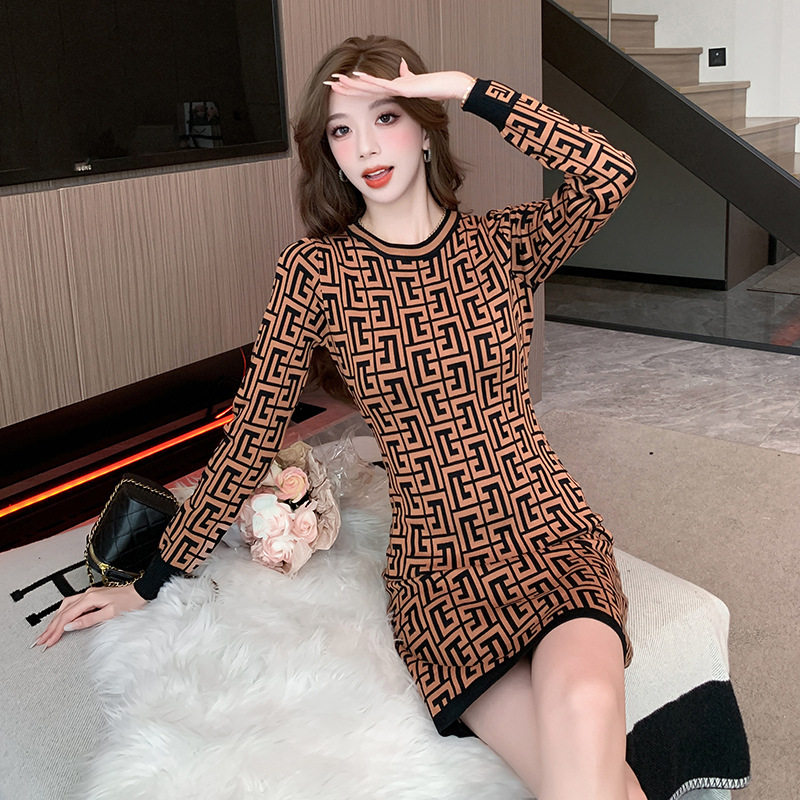 秋冬季气质长袖针织连衣裙女包臀裙修身显瘦韩版新款中长款打底裙