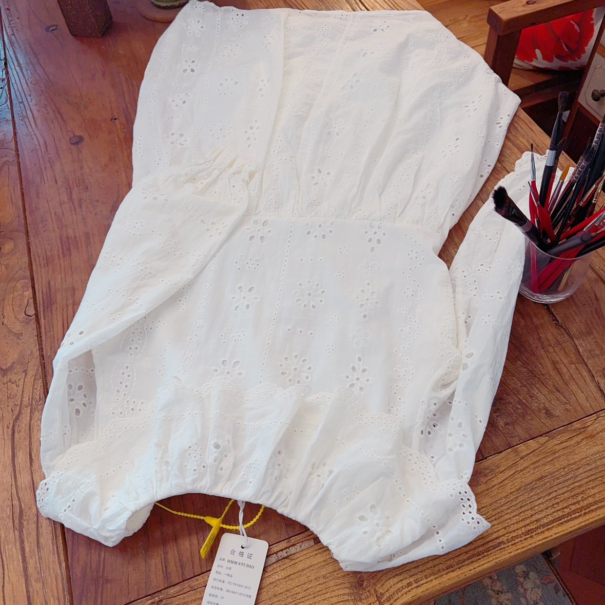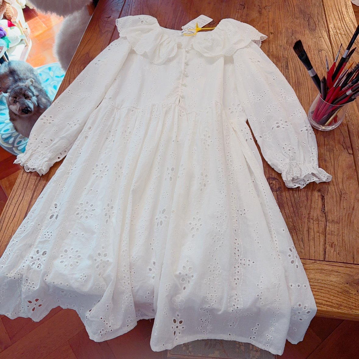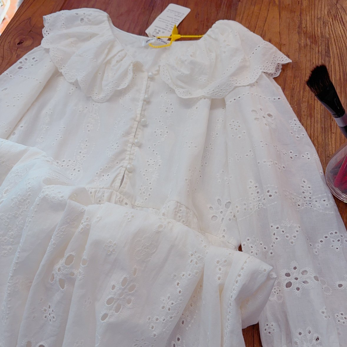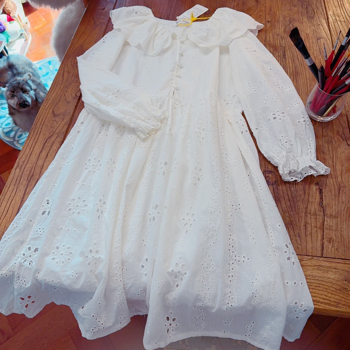 有内衬 打底好物 刺绣提花 花边娃娃领 休闲慵懒风白色长袖连衣裙