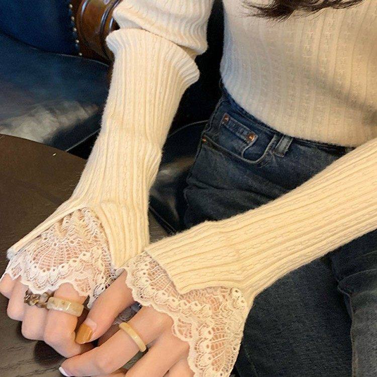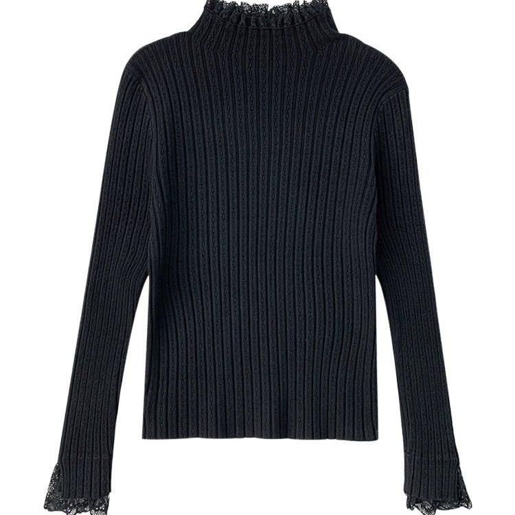 法式拼接蕾丝内搭针织衫女秋冬新款修身显瘦半高领毛衣打底衫