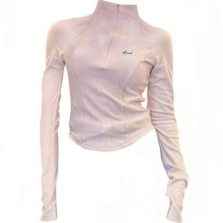 香港秋冬新款美式辣妹正肩短款长袖T恤女半高领加厚显瘦打底上衣