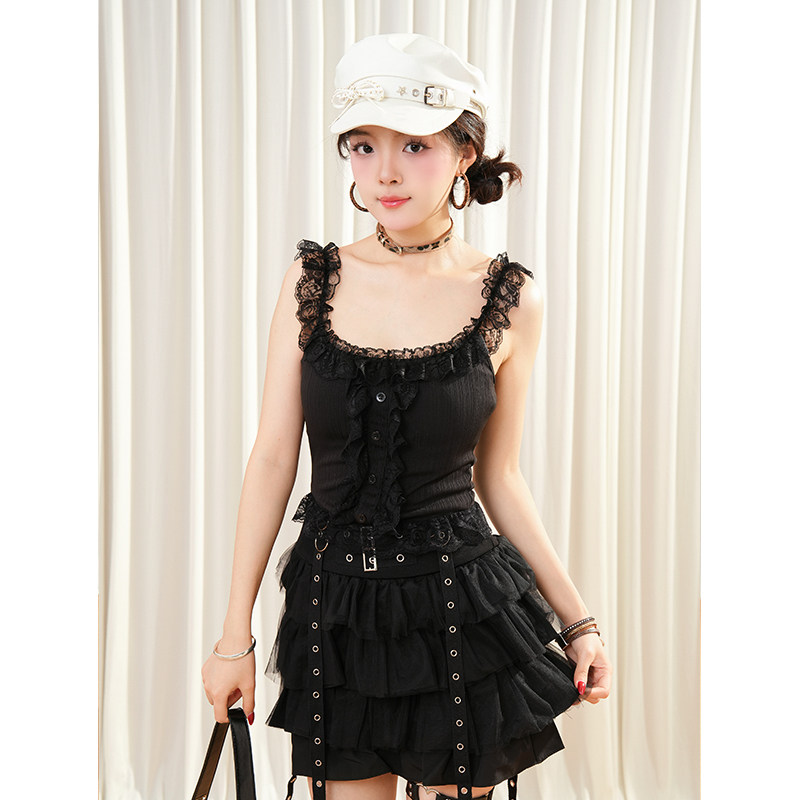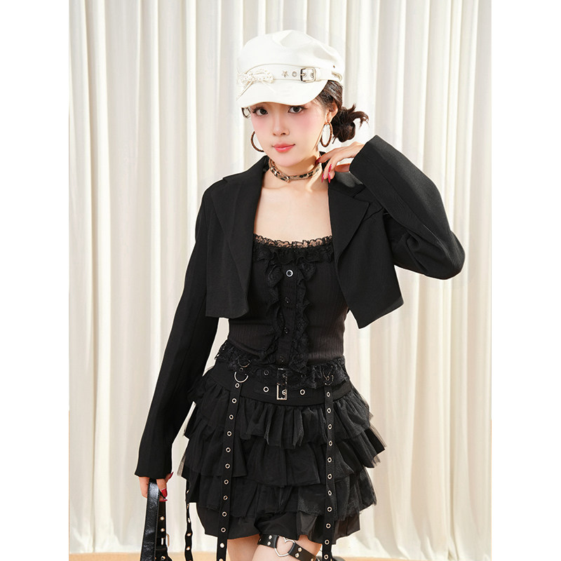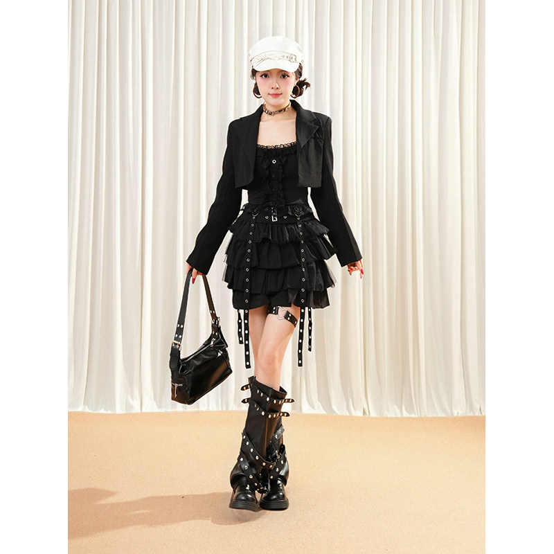 气质暗黑系外套+吊带+短裙三件套新款收腰小众甜辣时髦设计感套装