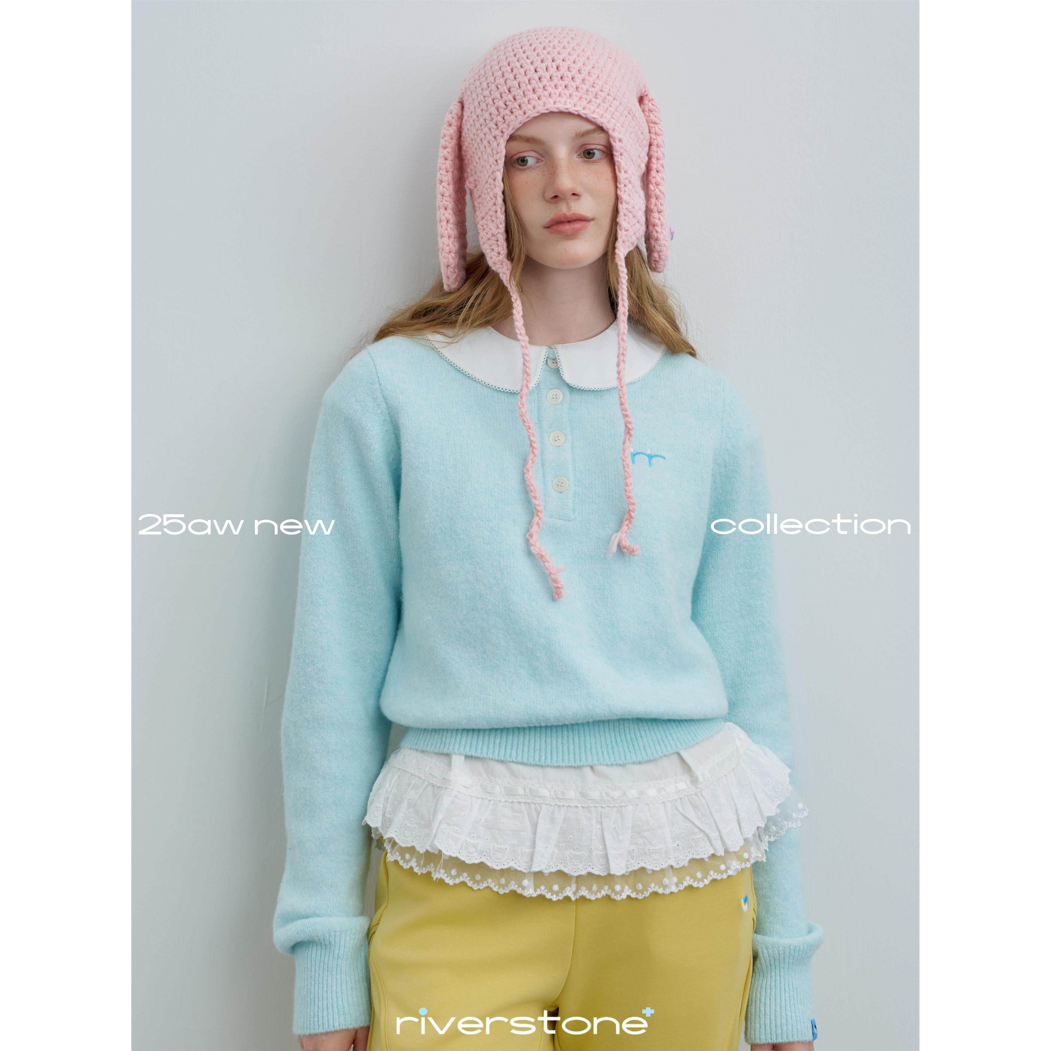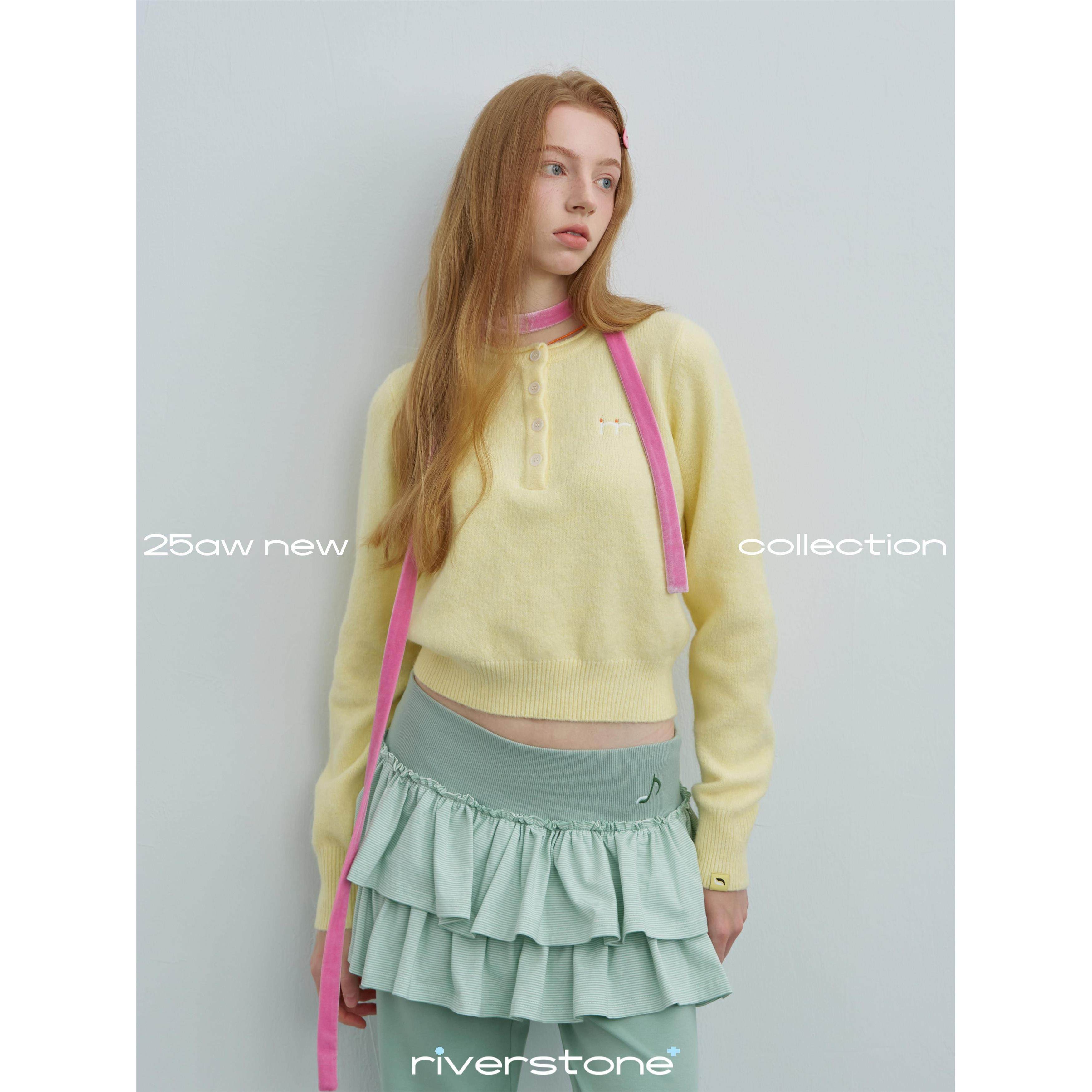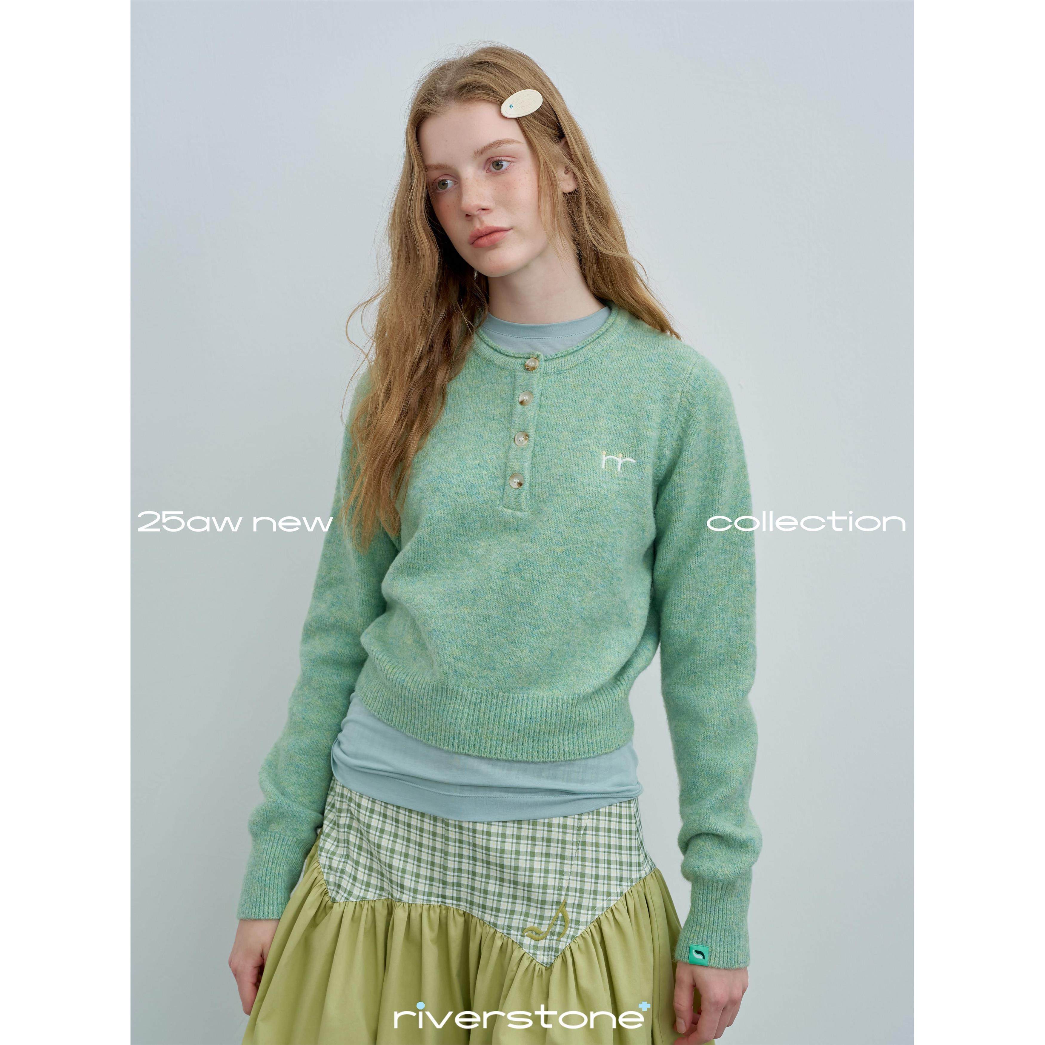 riverstone plus 糖果色圆领纽扣毛衣女慵懒感短款软糯针织衫上衣