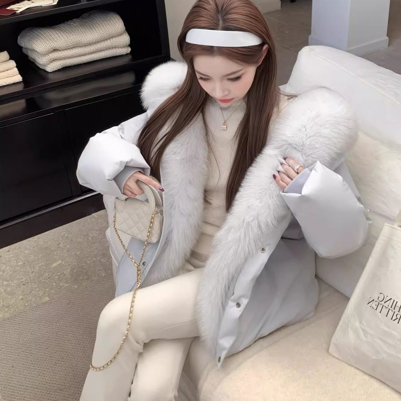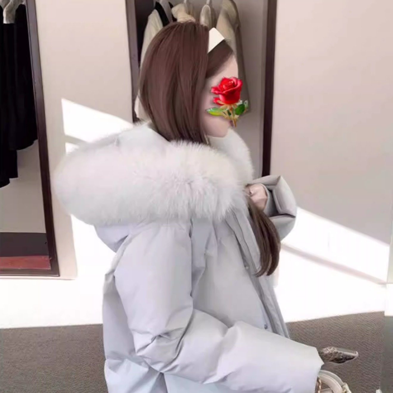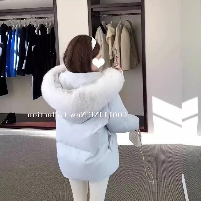大牌同款神妹冰蓝色大狐狸毛领羽绒服女连帽90国标白鸭绒加厚外套