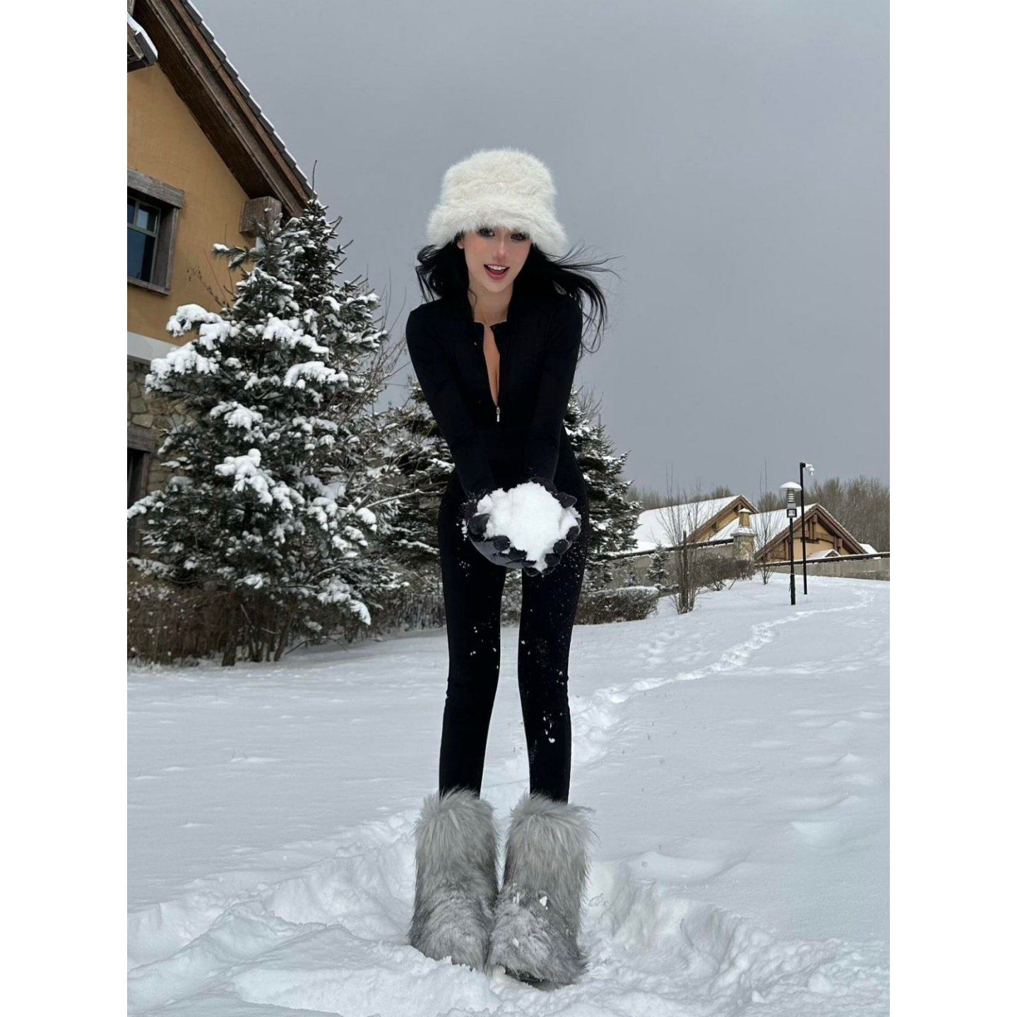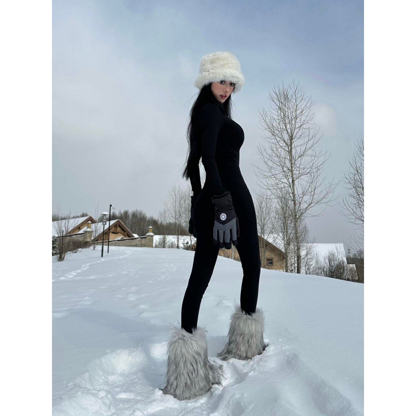 辣妹风紧身拉链黑色修身连体衣2026新款运动保暖外穿连体紧身衣