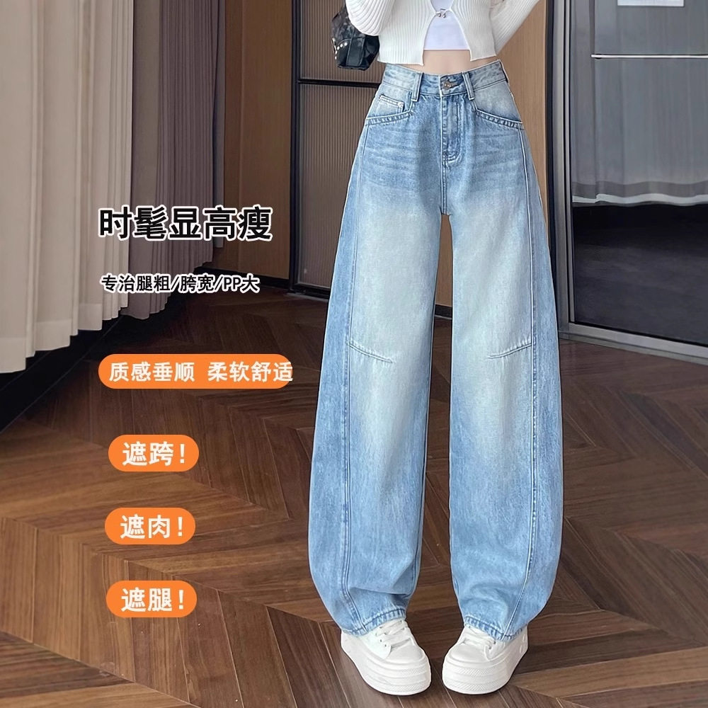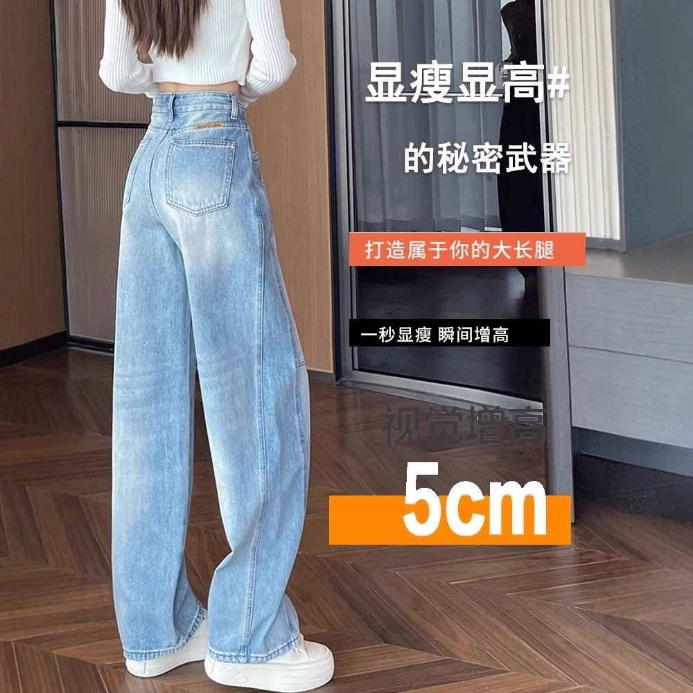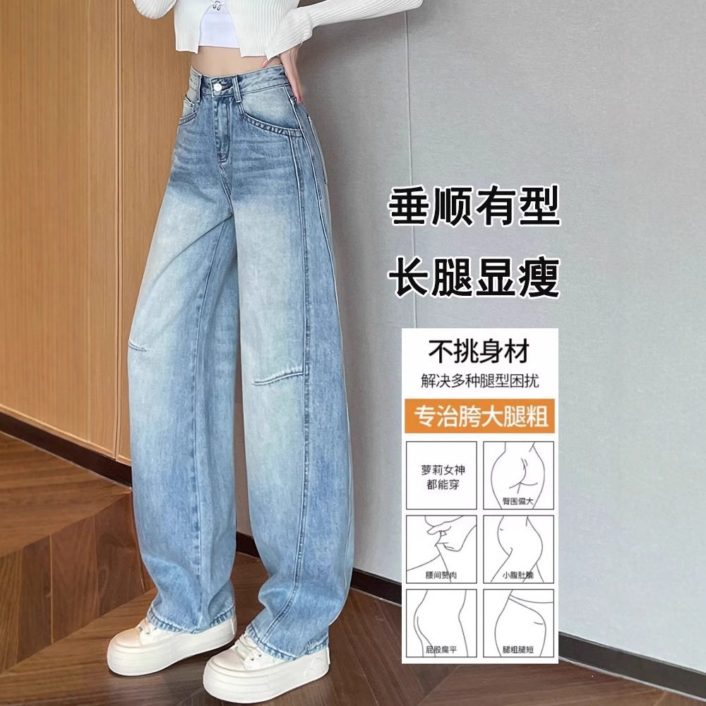 首页> 女装> 弯刀阔腿牛仔裤女夏季2025新款浅蓝色高腰宽松梨型身材加长直筒裤