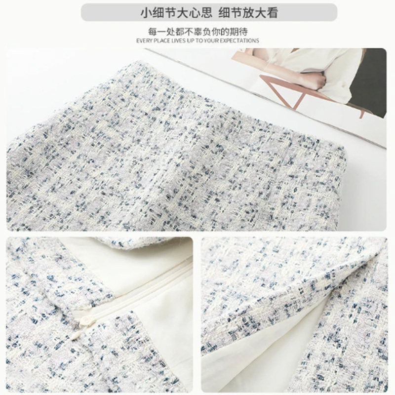 啄木鸟亮片毛呢半身裙女秋冬2025新款气质中长款小香风包臀裙