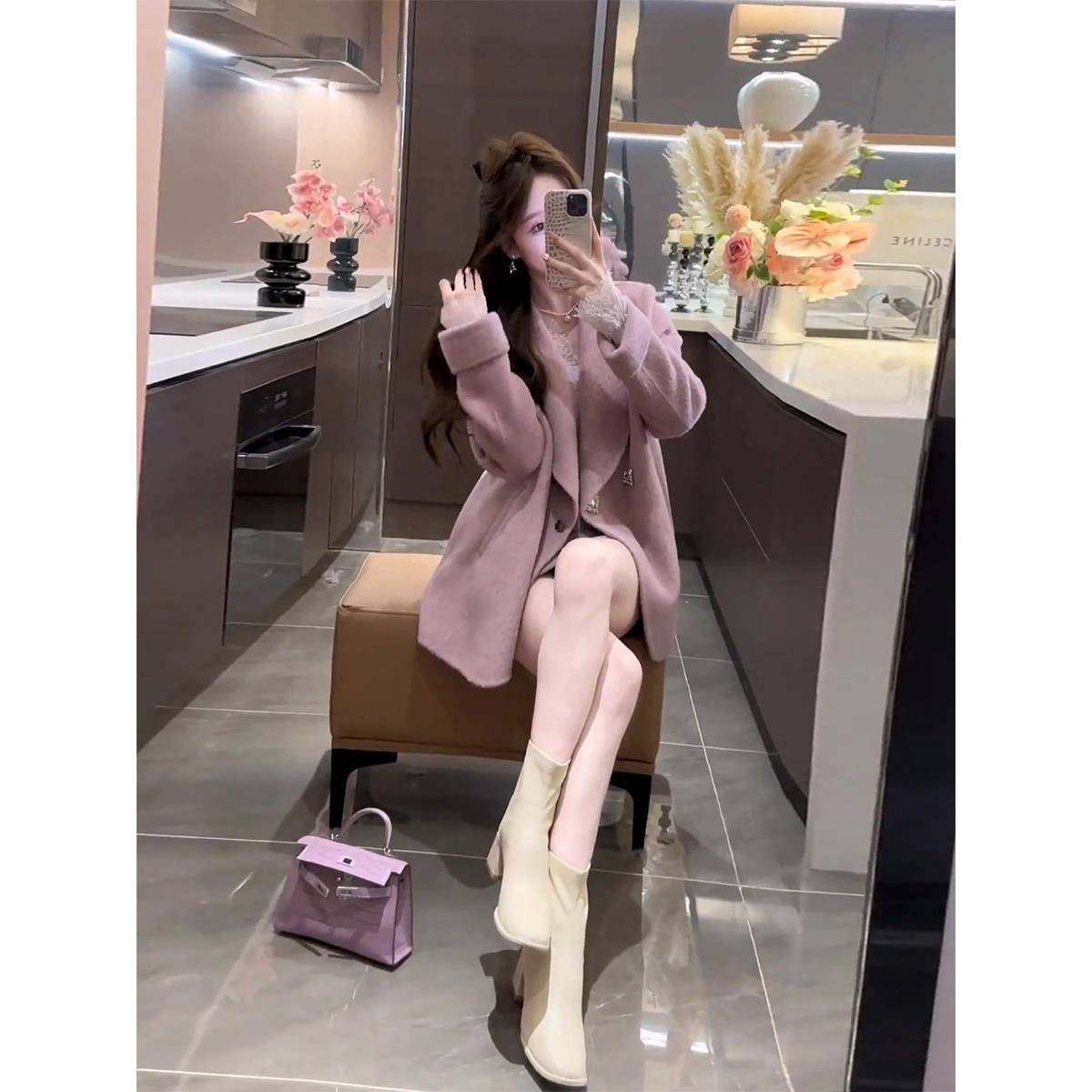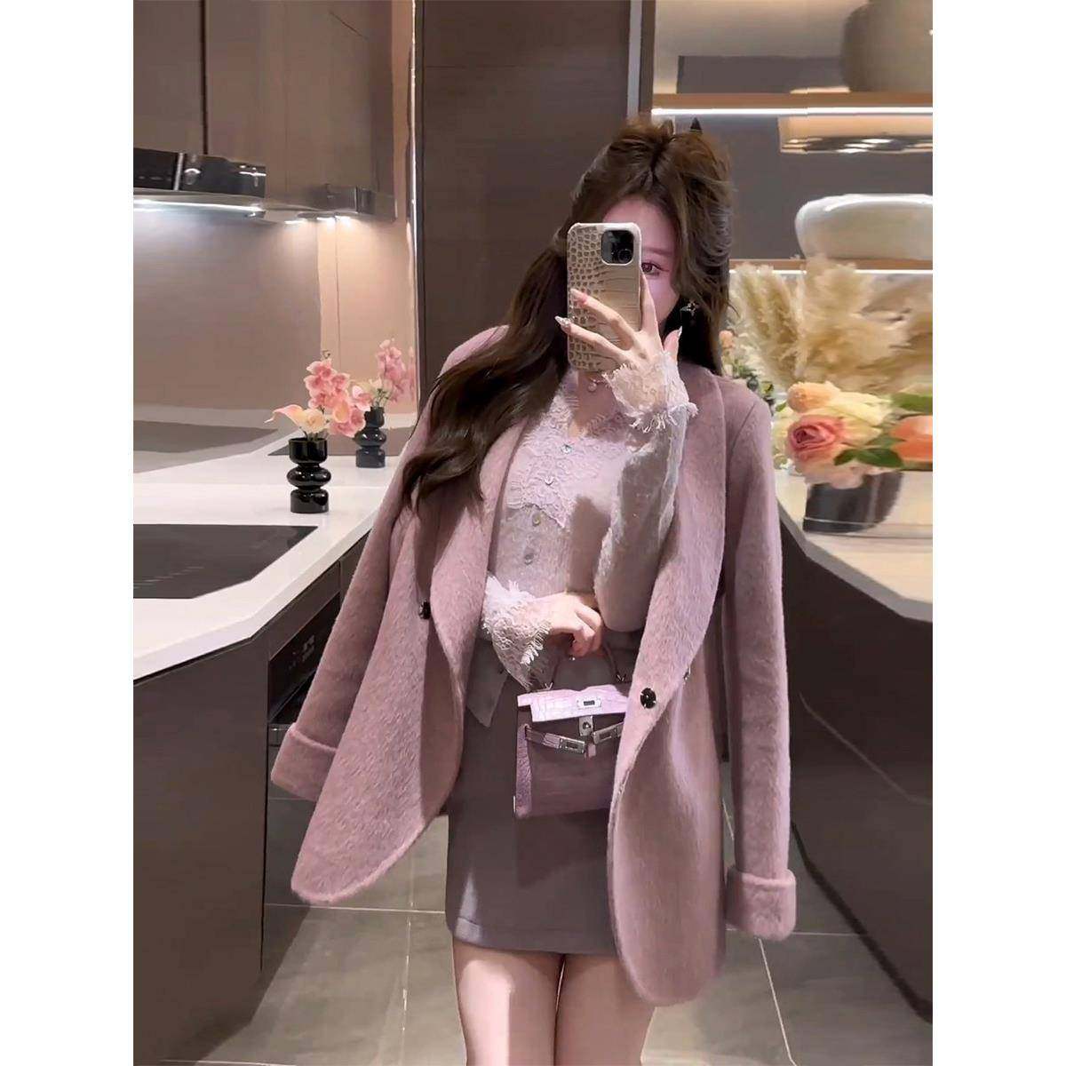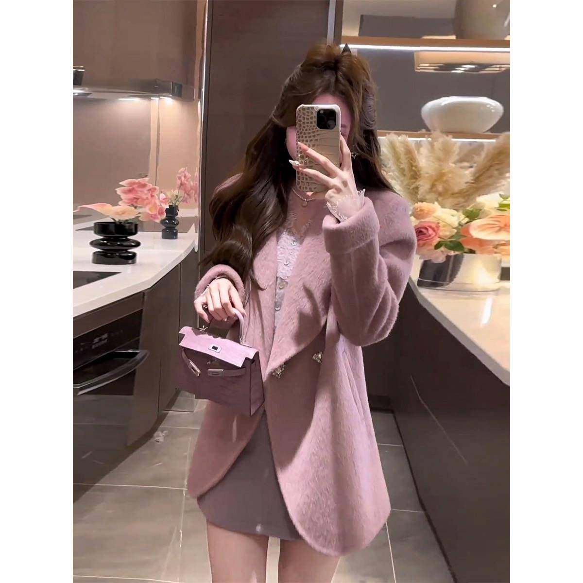 首页> 女装> 香港法式高级感粉色小香风毛呢外套女2025秋冬季名媛气质西装外套