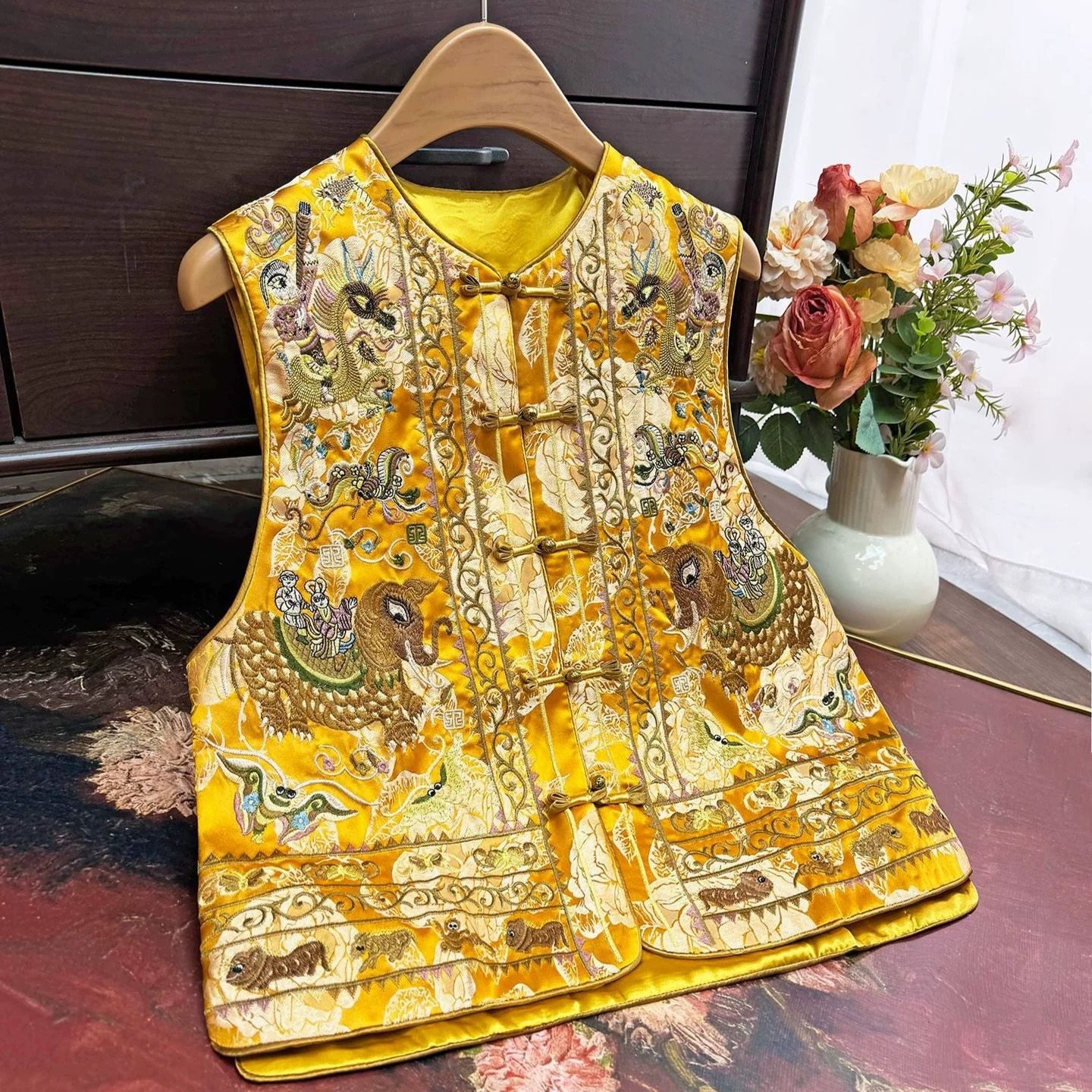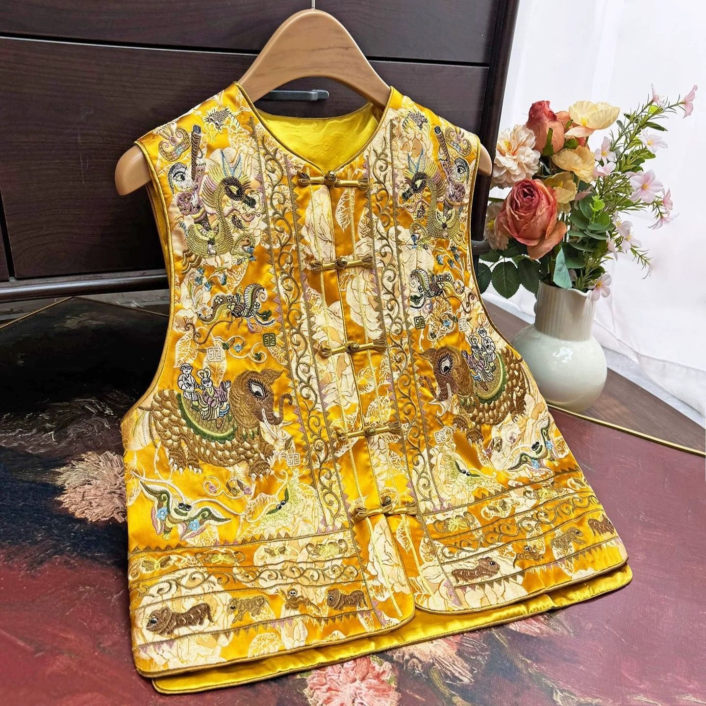 【龙龟神龟】新款中式重工刺绣国风马甲圆领盘扣坎肩马夹真丝织花