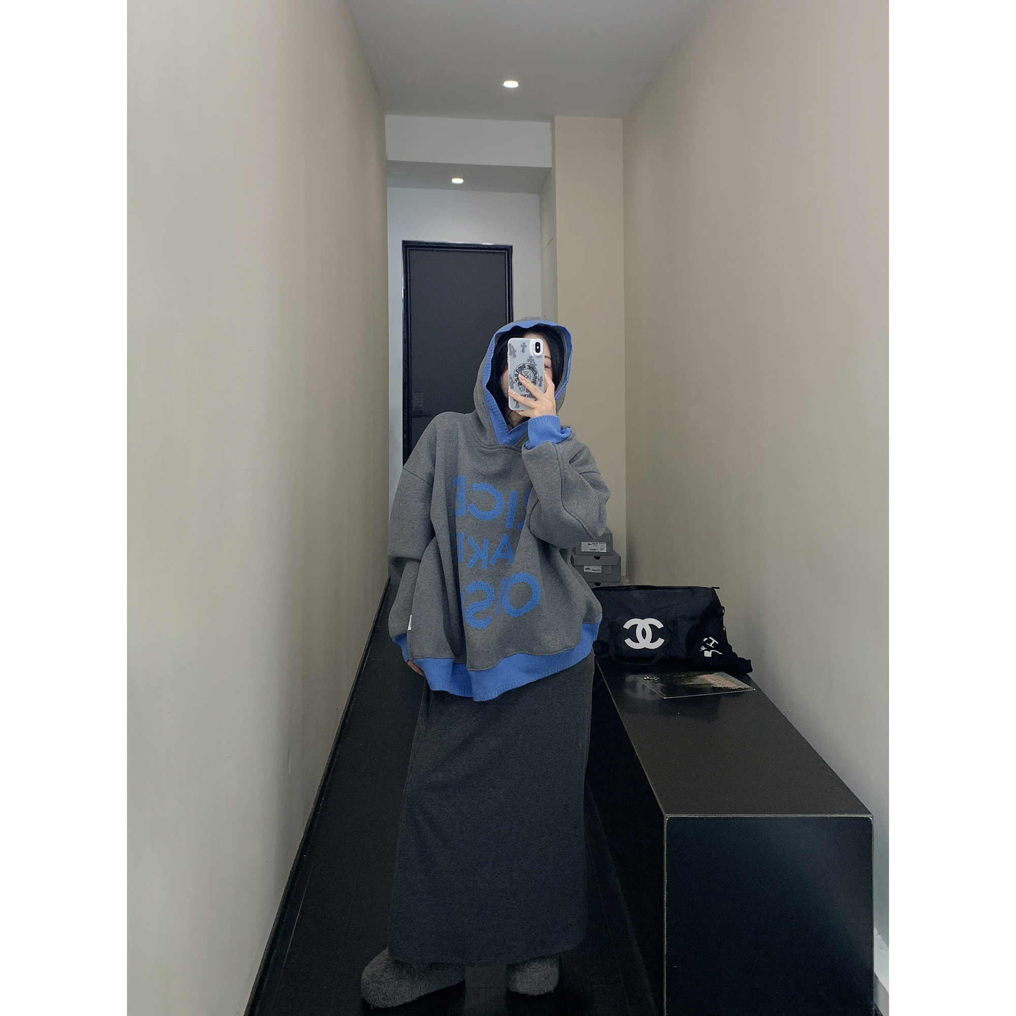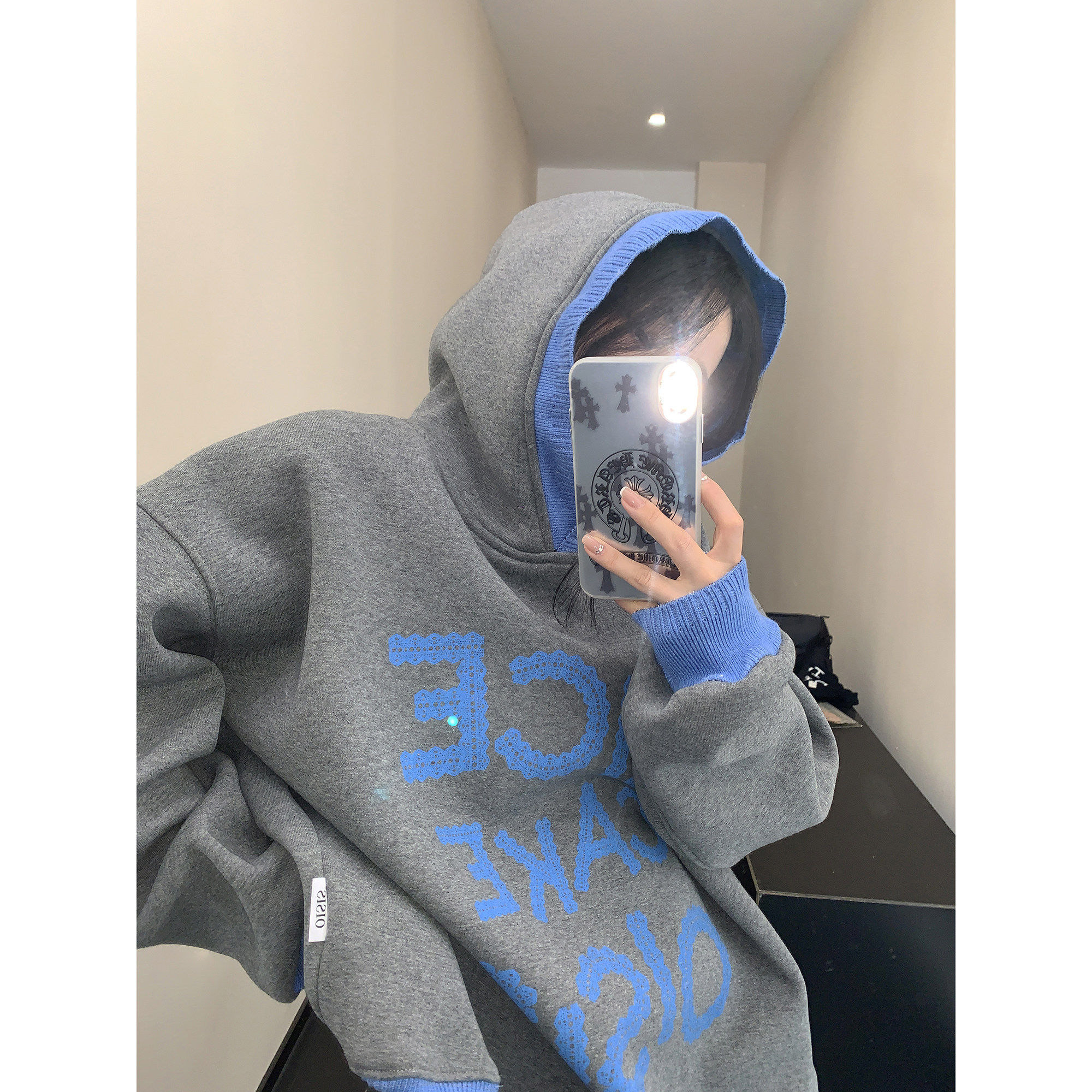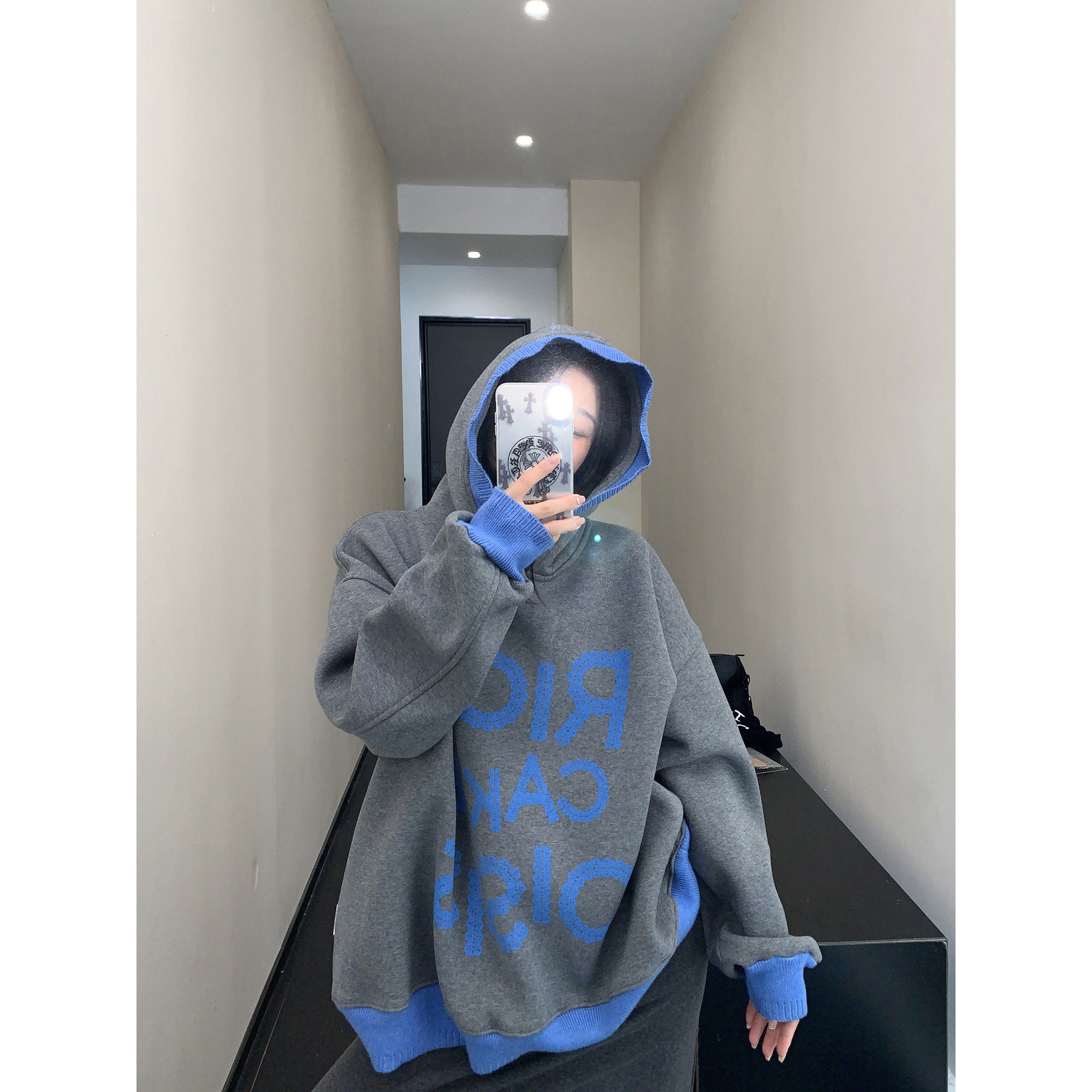 【新品85折抢 11.3 20:00】废柴覆古松弛感撞色加绒连帽卫衣女潮