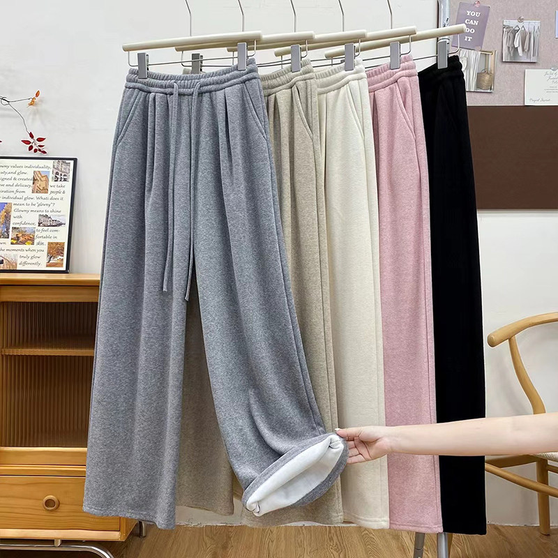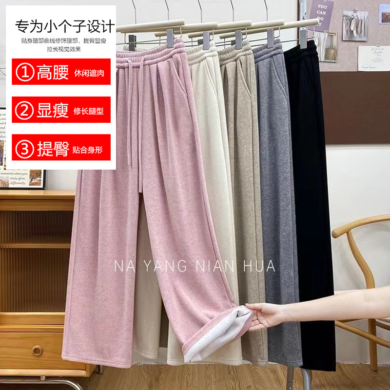 首页> 女装> 小个子150cm软糯加绒阔腿裤女秋冬加厚保暖155xs抽绳休闲直筒卫裤