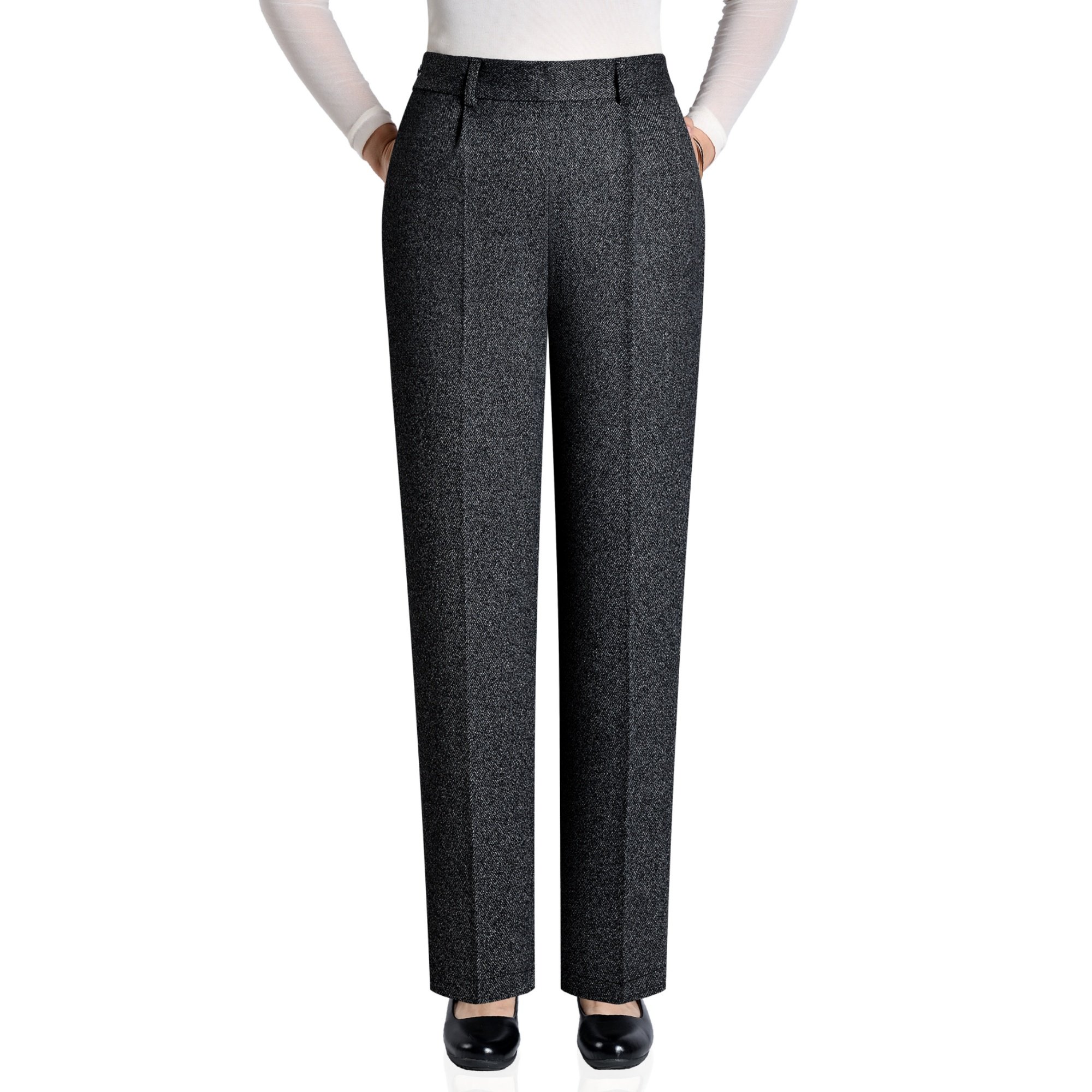 首页> 女装> 秋冬款旁开扣女裤弹力妈妈直筒裤高腰中年女西裤休闲百搭毛呢长裤