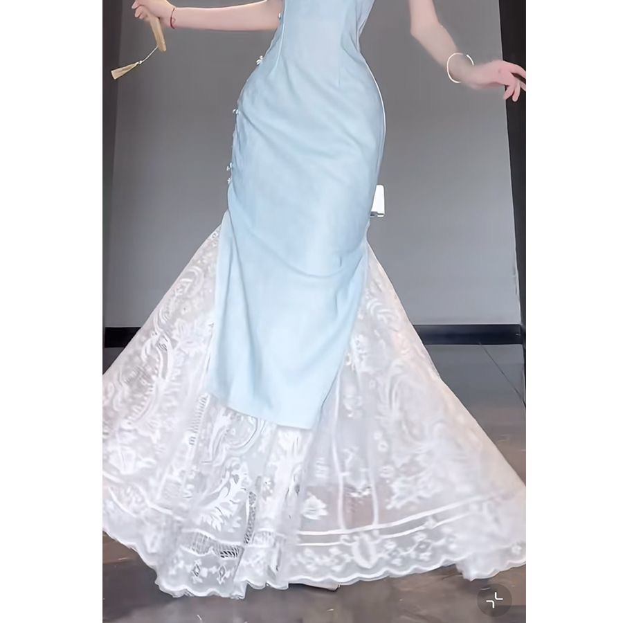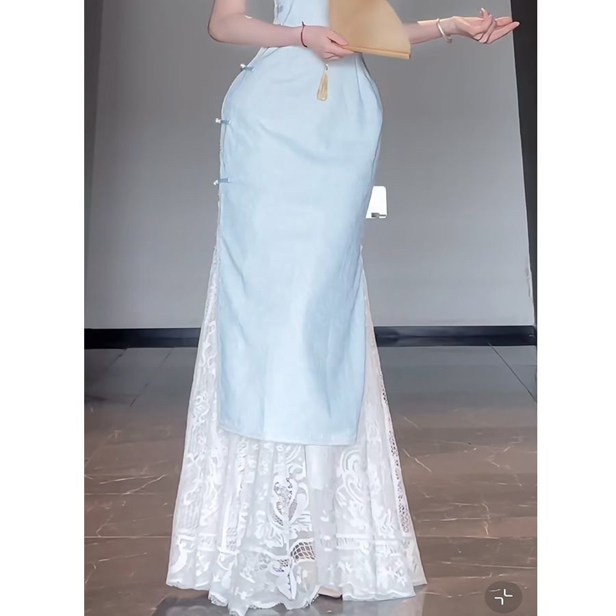 旗袍内衬裙新中式复古夏季薄款白色蕾丝a字裙旗袍专用鱼尾打底裙
