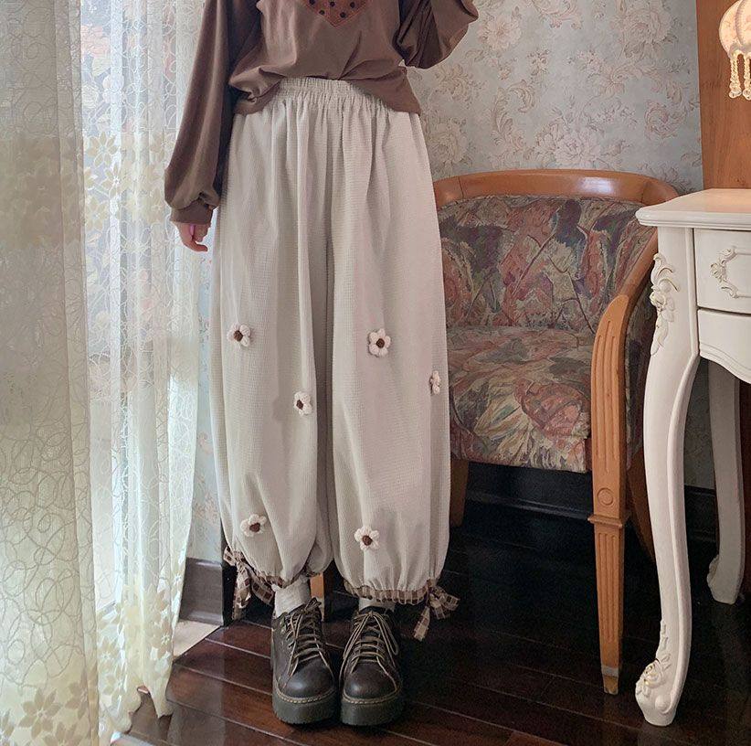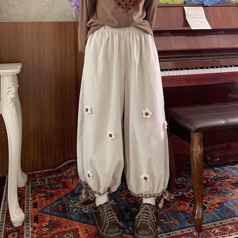 日系复古灯芯绒束脚休闲裤子女宽松显瘦可爱花苞裤百搭九分阔腿裤