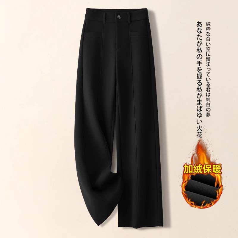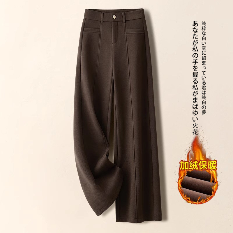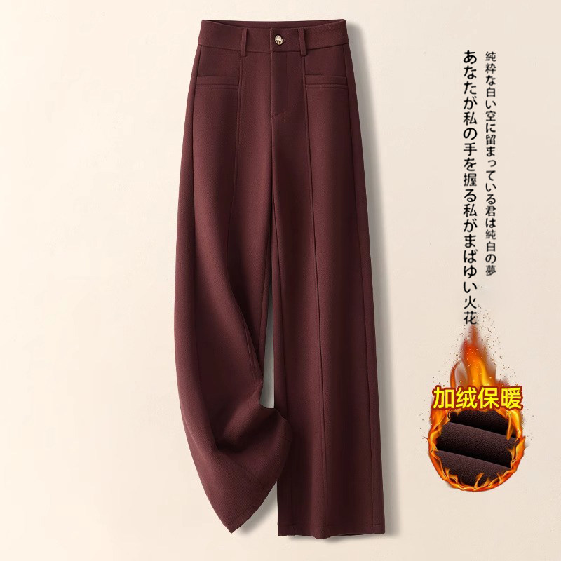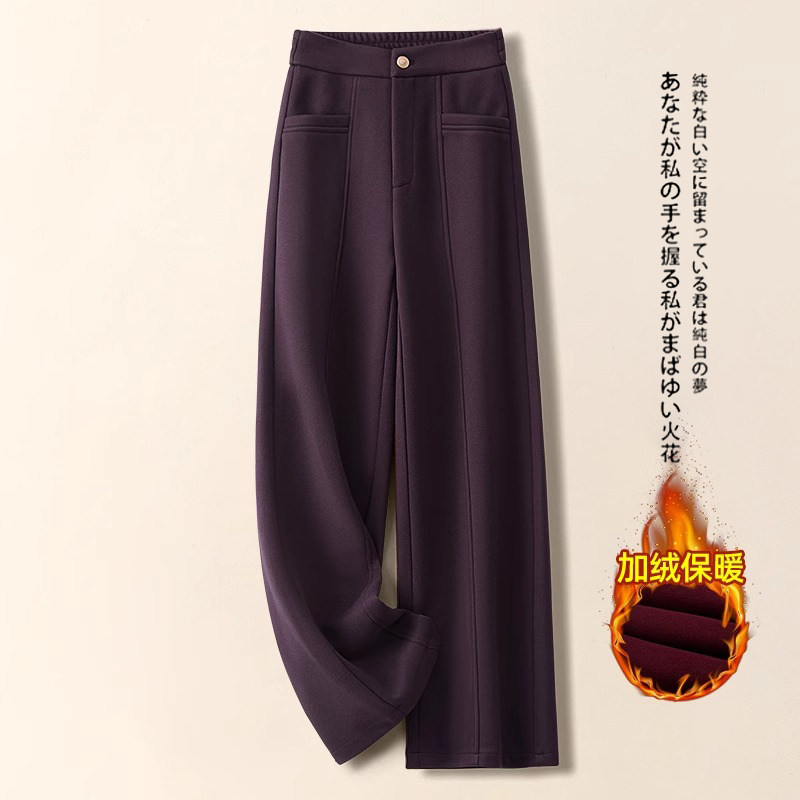 啄木鸟紫色毛呢阔腿裤女秋冬季显瘦今年流行呢子软糯加绒直筒裤