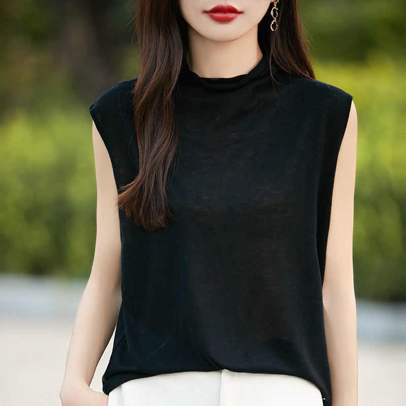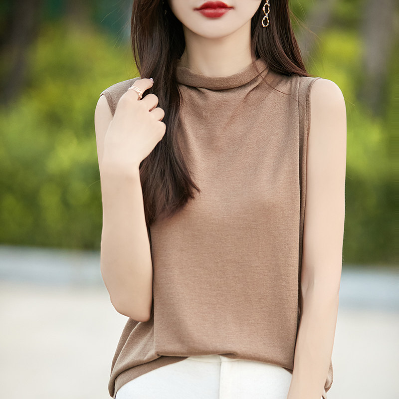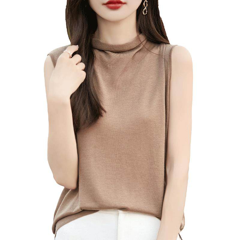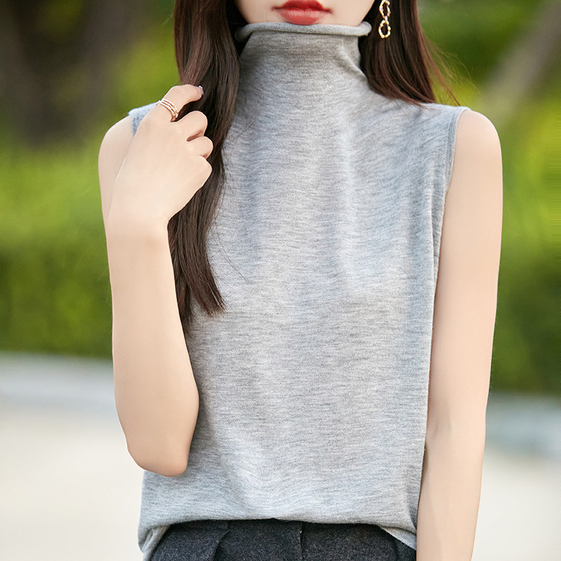简约百搭堆堆领无袖针织衫背心女春季叠穿通勒毛衣打底衫背心上衣