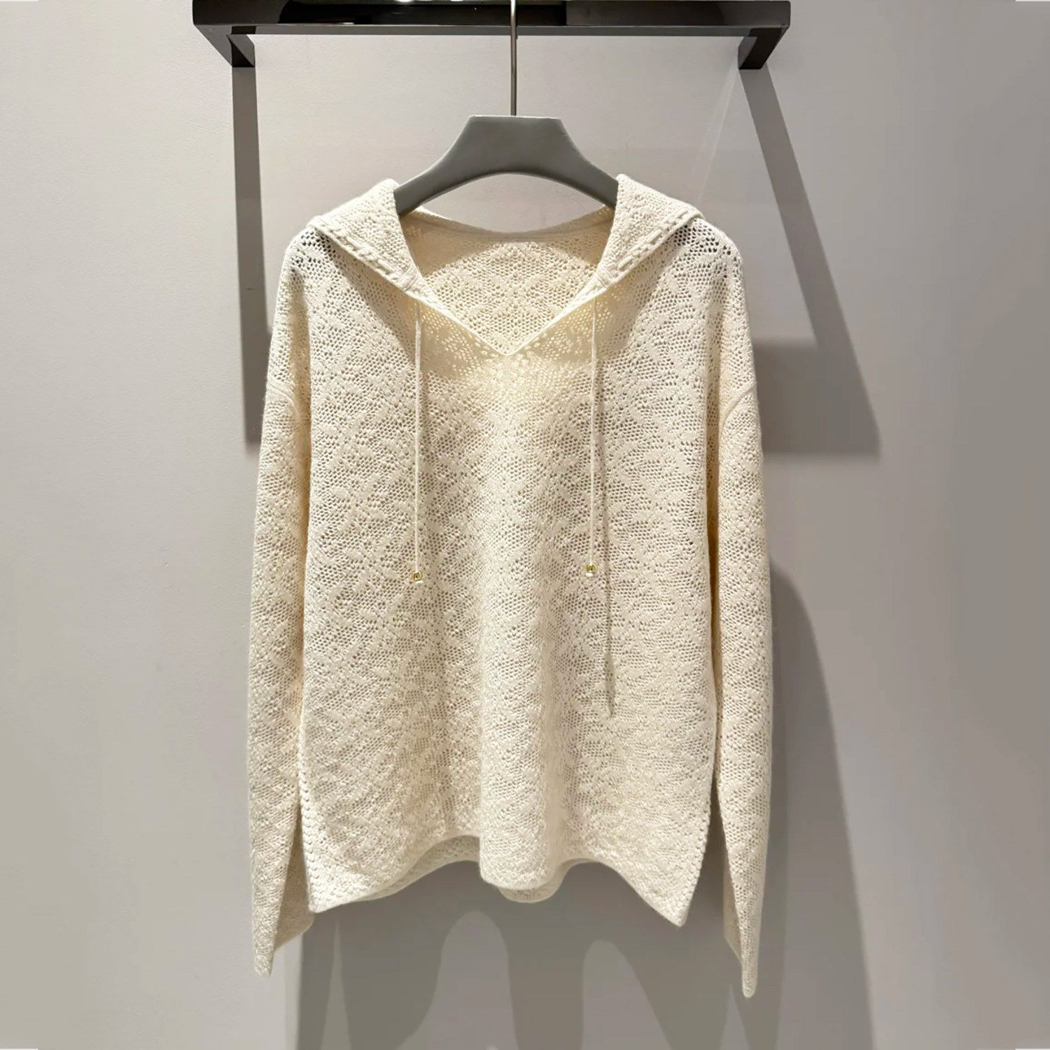 首页> 女装> 深圳南油高端女装2026春季新款休闲慵懒风连帽抽绳宽松毛针织衫女