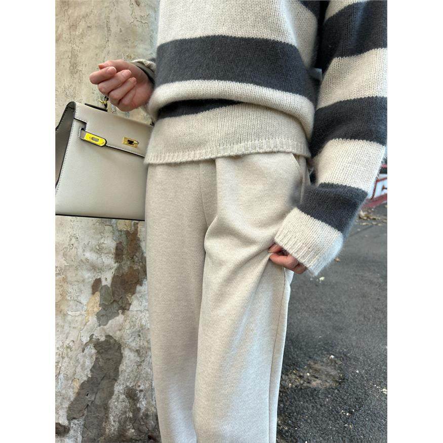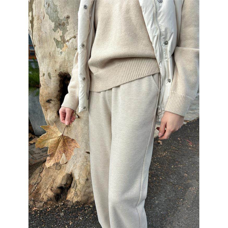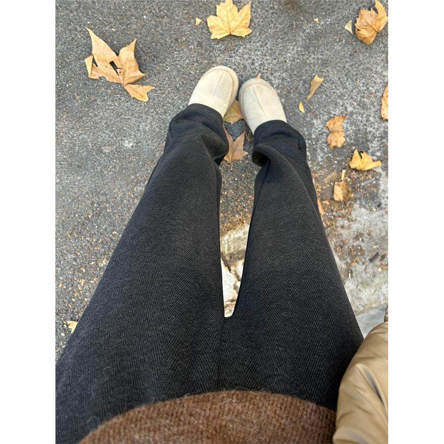 羊毛呢阔腿裤女秋冬季新款高腰垂感小个子窄版直筒裤加绒加厚裤子