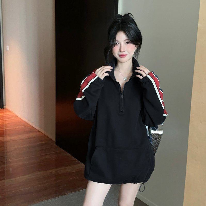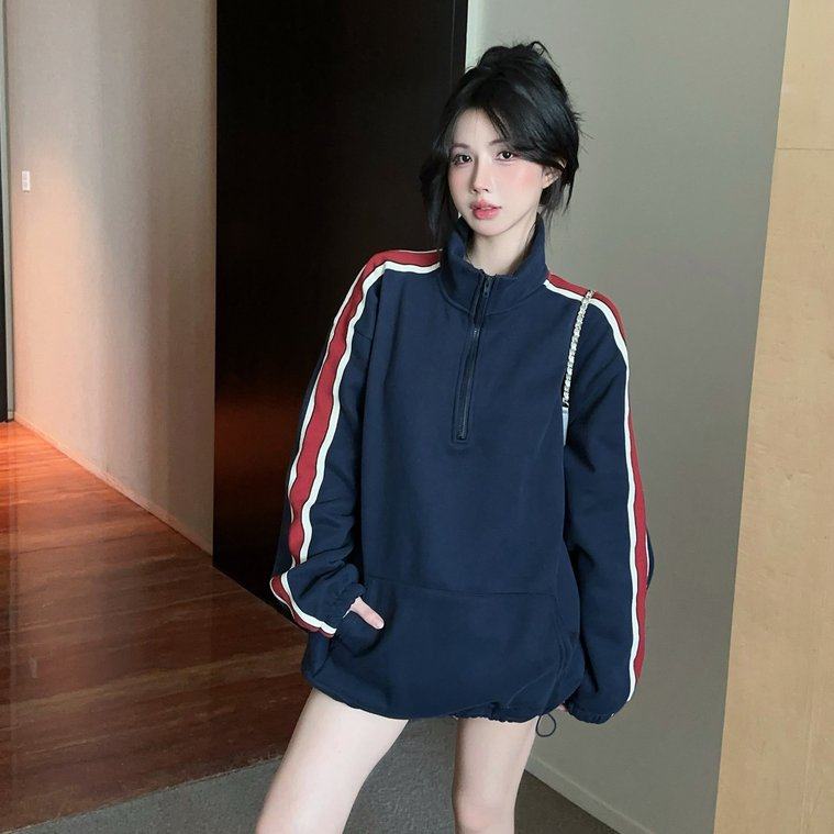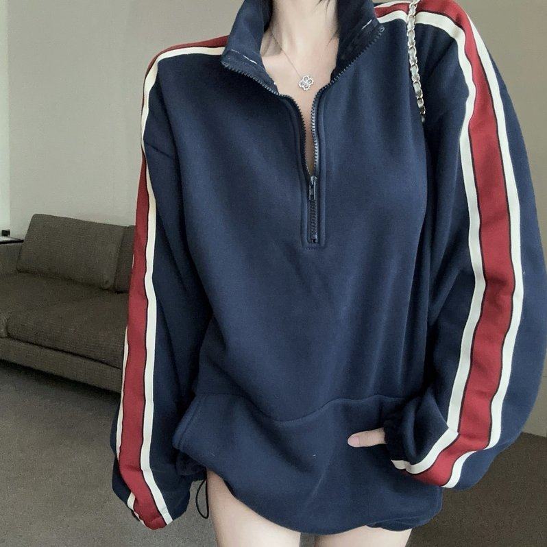 实拍实价 秋韩国加绒加厚卫衣半拉链设计款宽松显瘦上衣绒卫衣女