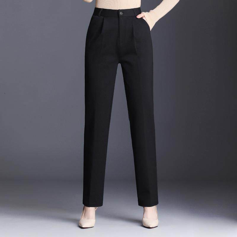 女裤秋冬加绒休闲裤子西裤女大码直筒裤高腰工装裤胖MM200斤裤子