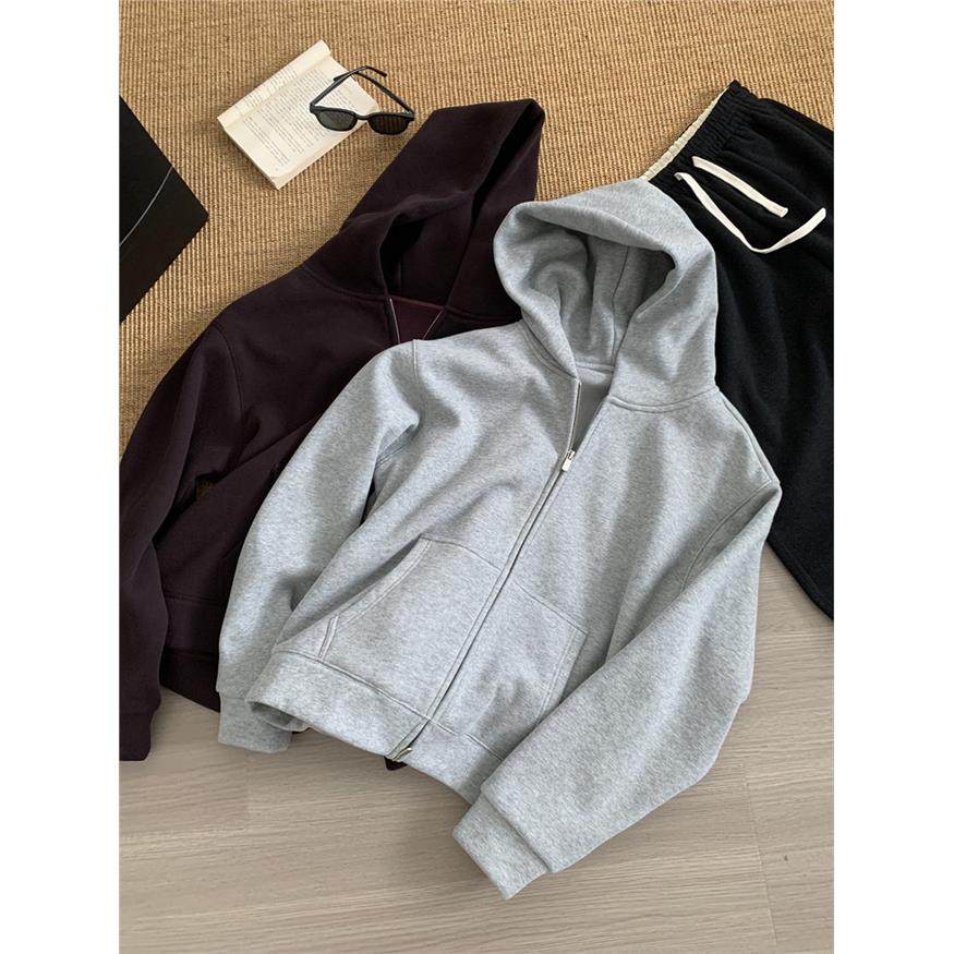460g重磅摇粒绒卫衣外套女慵懒韩系大版连帽拉炼开衫冬季加绒外套