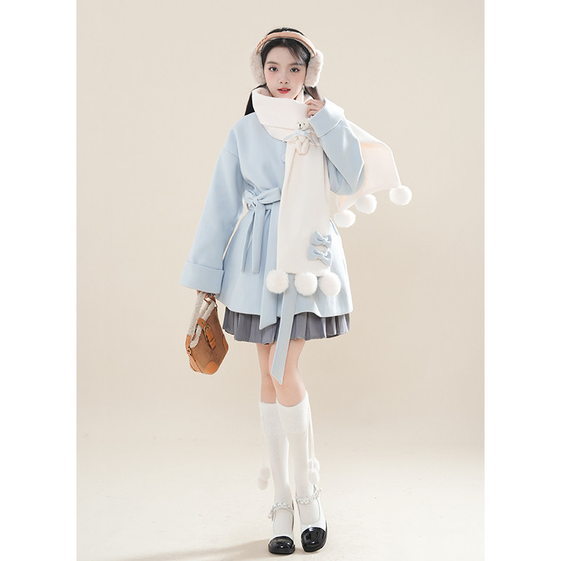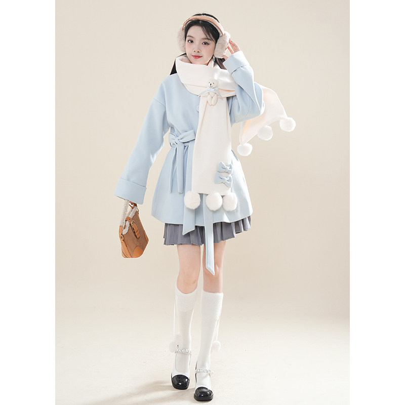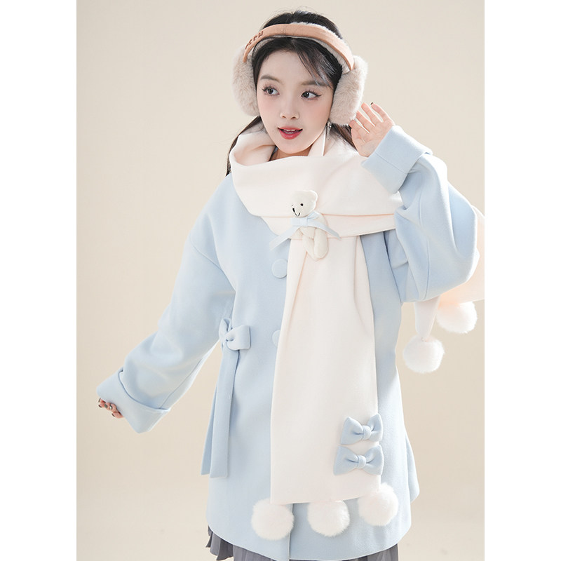首页> 女装> 初雪小熊秋冬氛围感日系软妹小熊围巾+中长款毛呢外套两件套2025