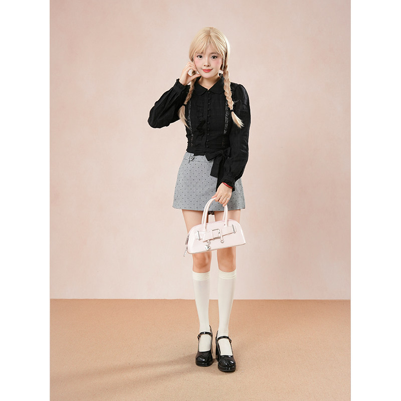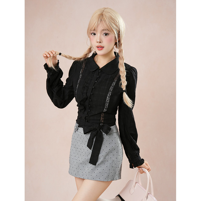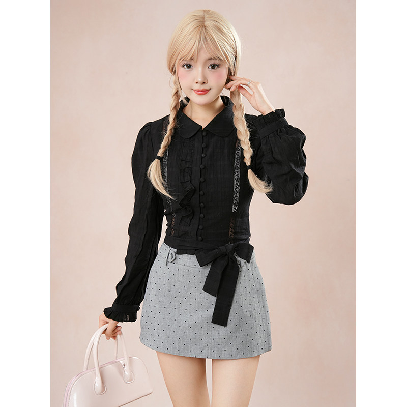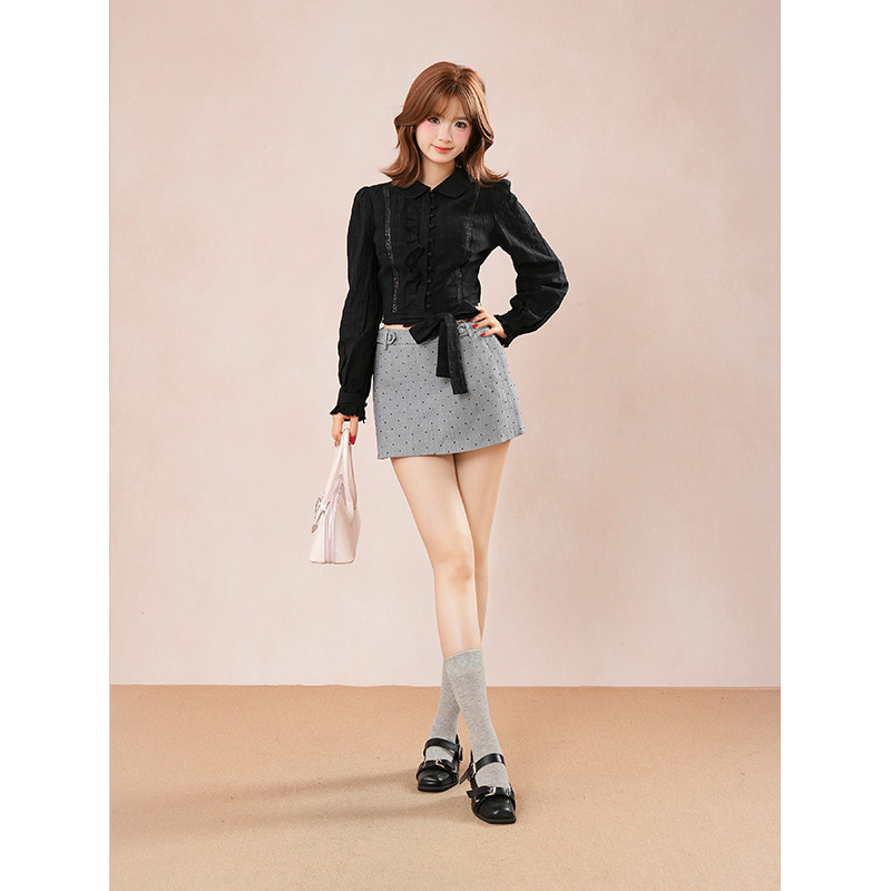 首页> 女装> 灰猫尾巴 万搭款万能黑色衬衫上衣+波点显瘦裤裙套装女秋季新款