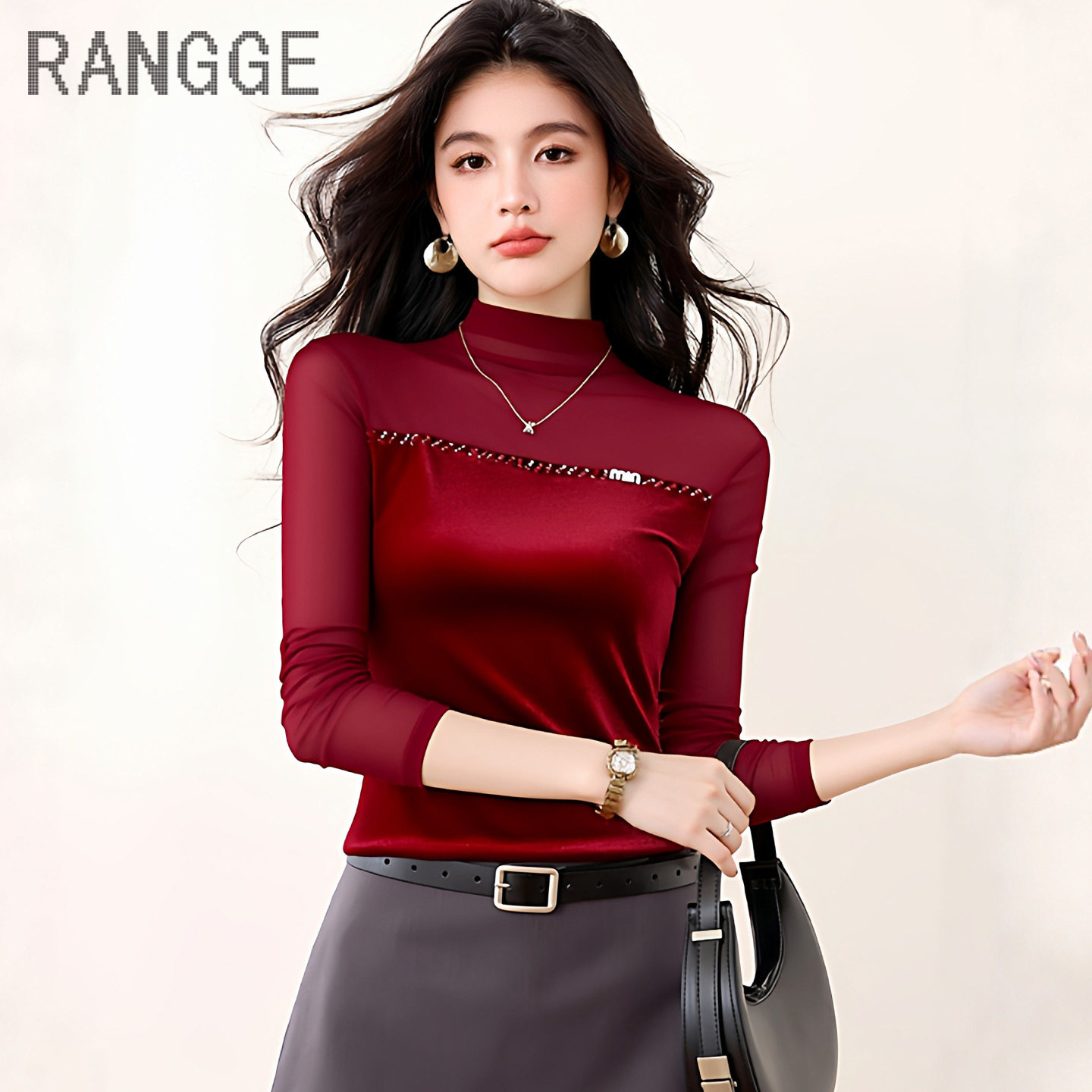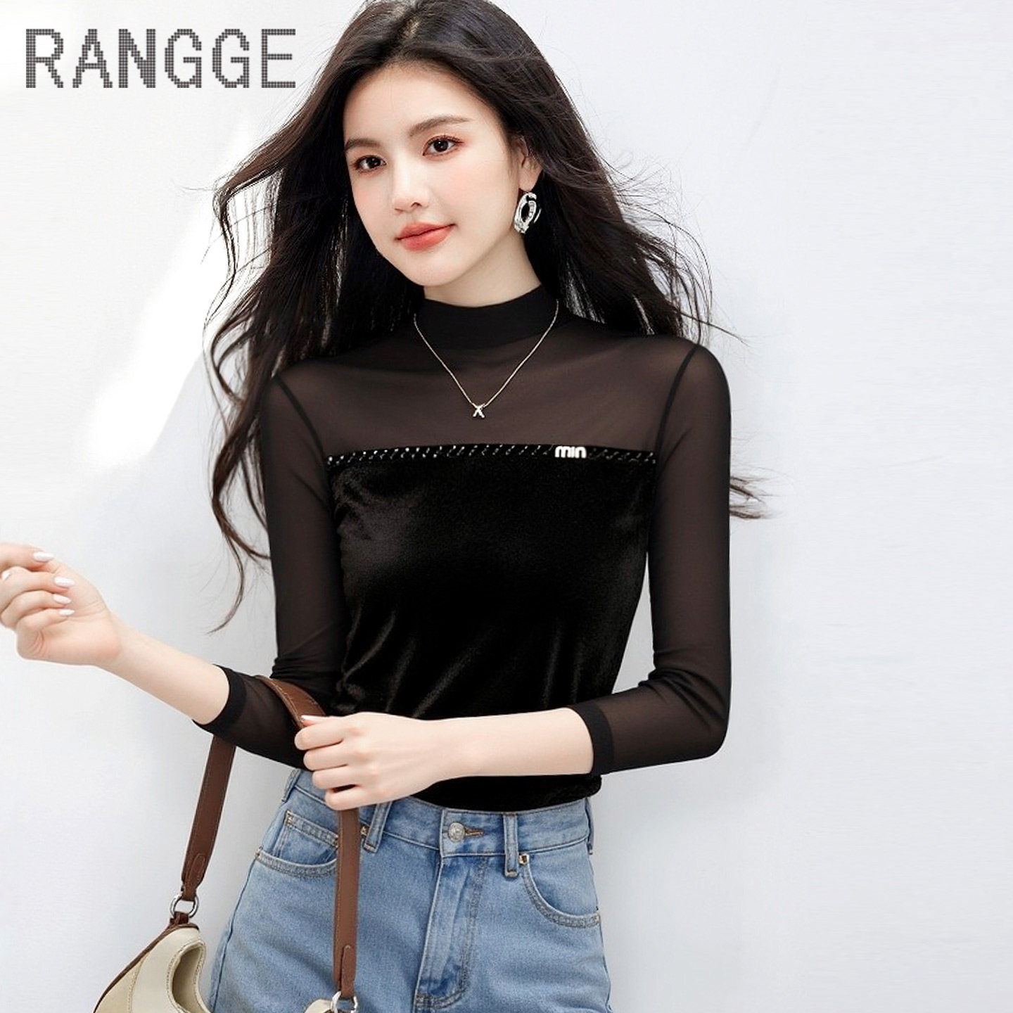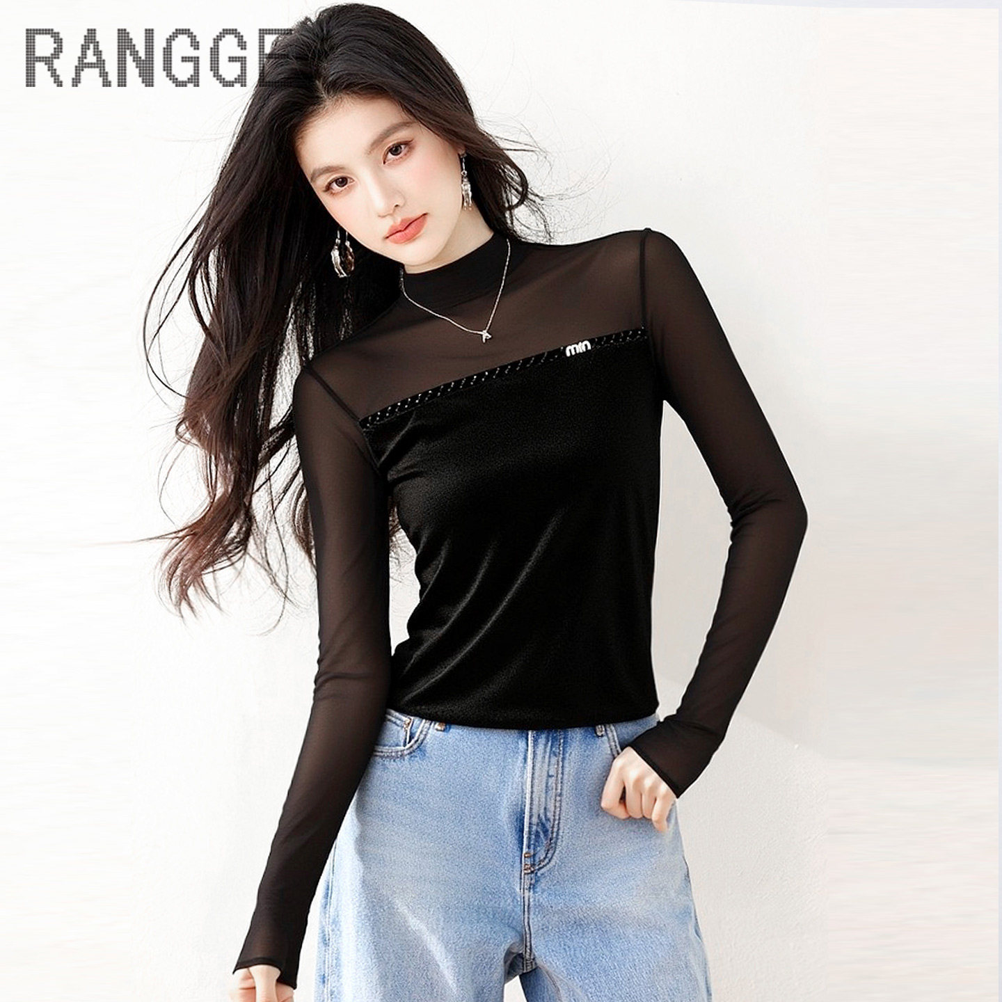 首页> 女装> 高级感气质网纱拼接透视打底衫薄款长袖T恤女洋气半高领丝绒上衣
