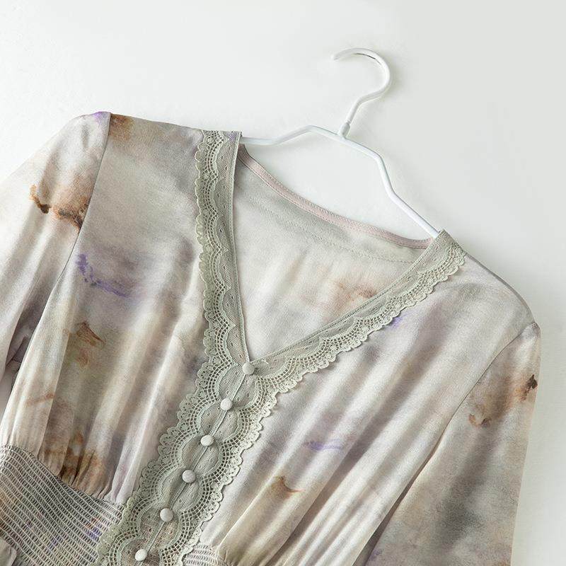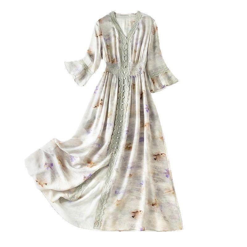 大码女装法式茶歇双绉长裙夏季2026新款遮肉显瘦真丝连衣裙