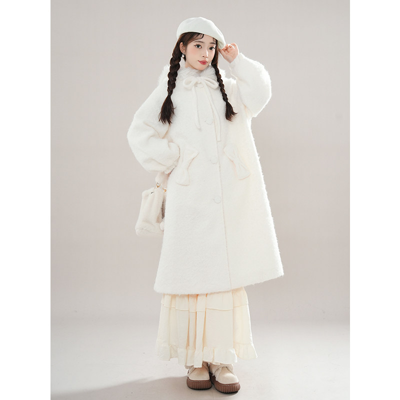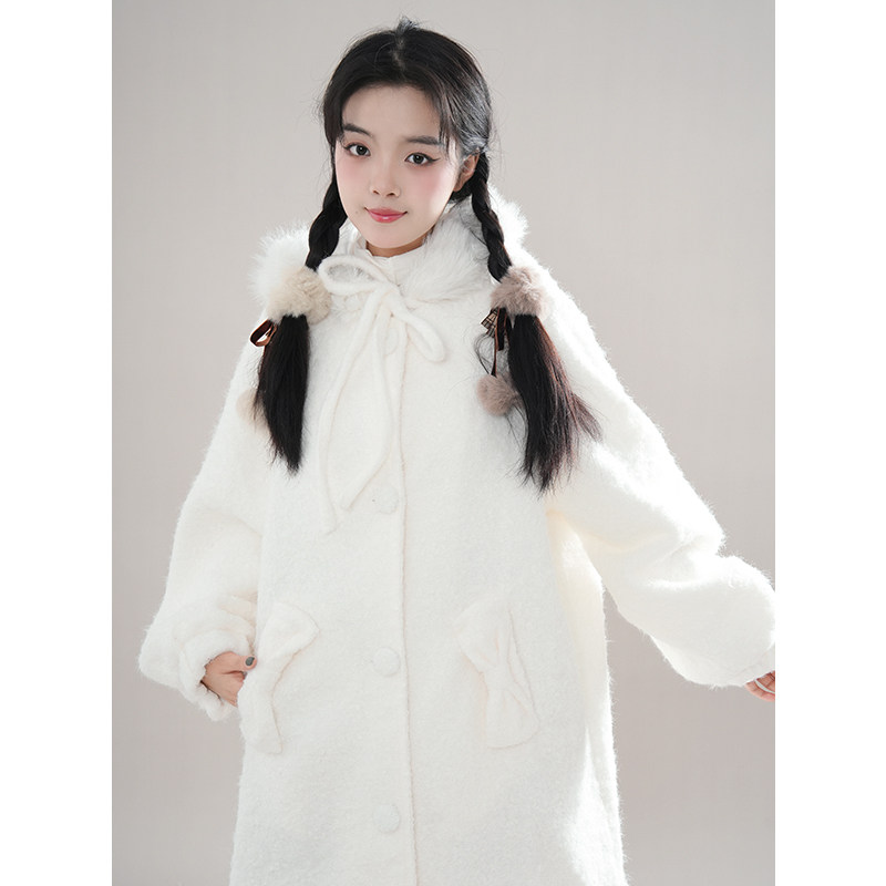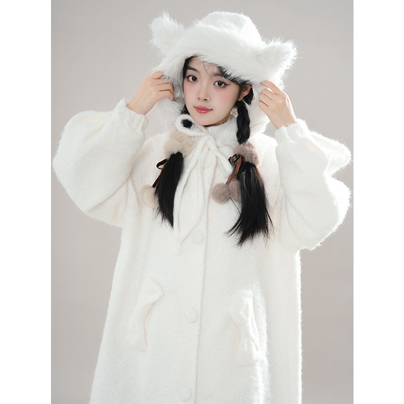 首页> 女装> 白色小熊 甜美学院风设计感毛呢外套秋冬新款氛围感中长呢子大衣