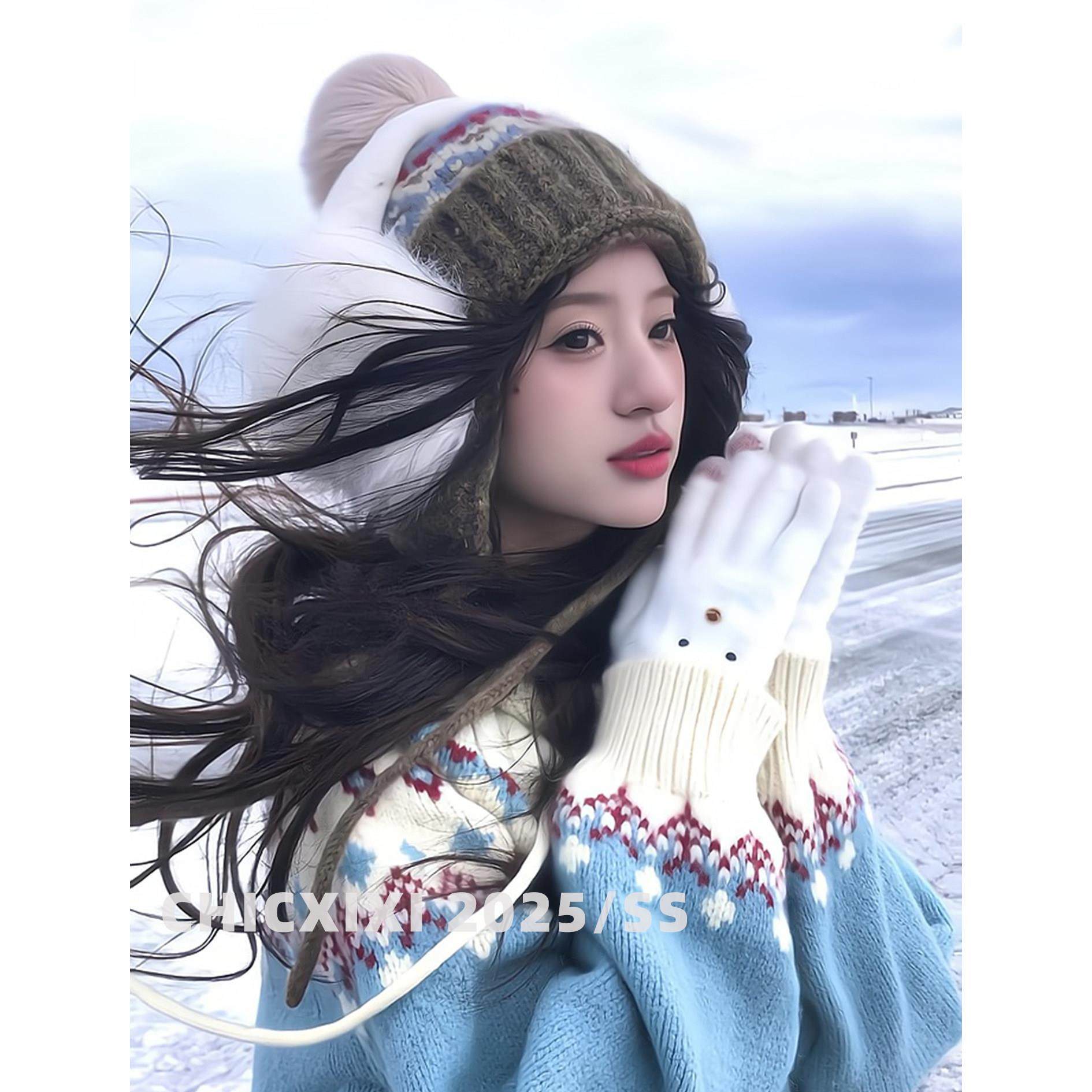氛围感蓝色费尔岛牛角扣毛衣外套女秋冬季慵懒风连帽圣诞针织开衫