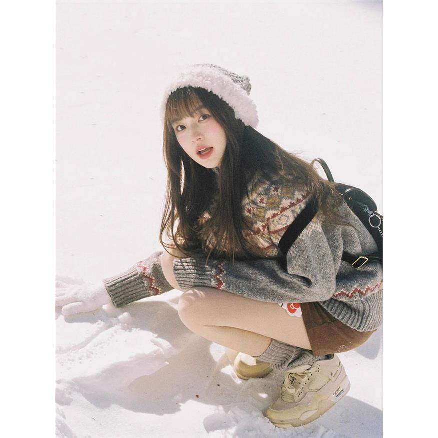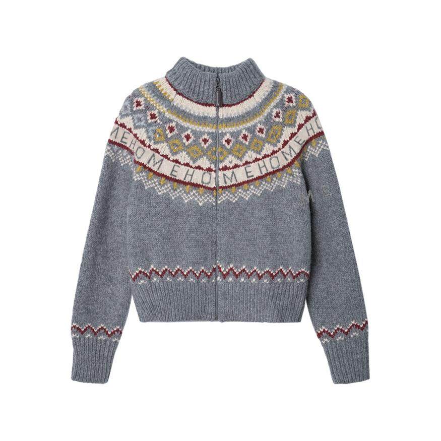 灰色费尔岛软蜡针织女装2025新秋冬覆古慵懒风格高领针织开衫夹克