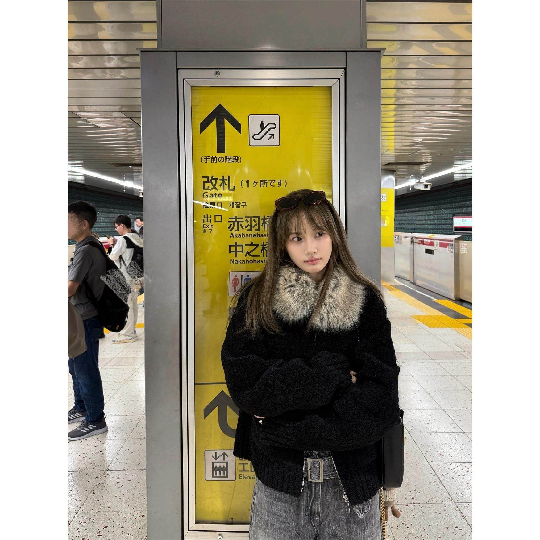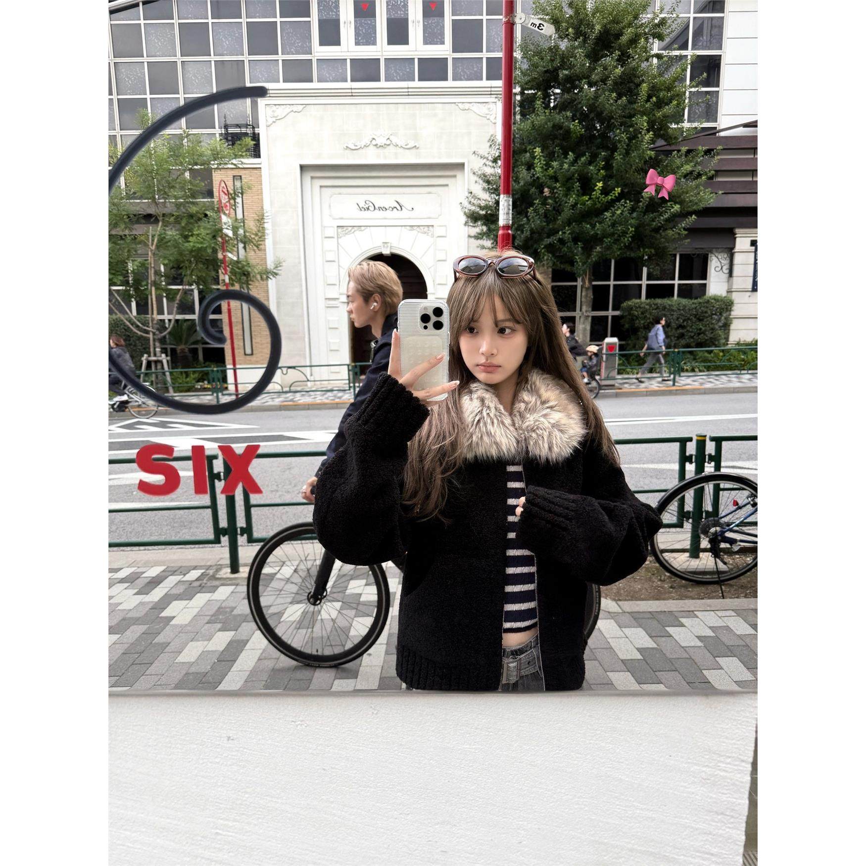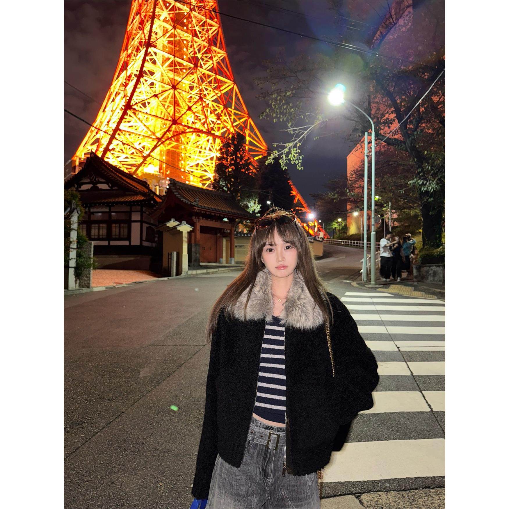 CEEYOU【10/20 20:00 新品限时95折】定染毛领小颗粒羊羔毛外套冬